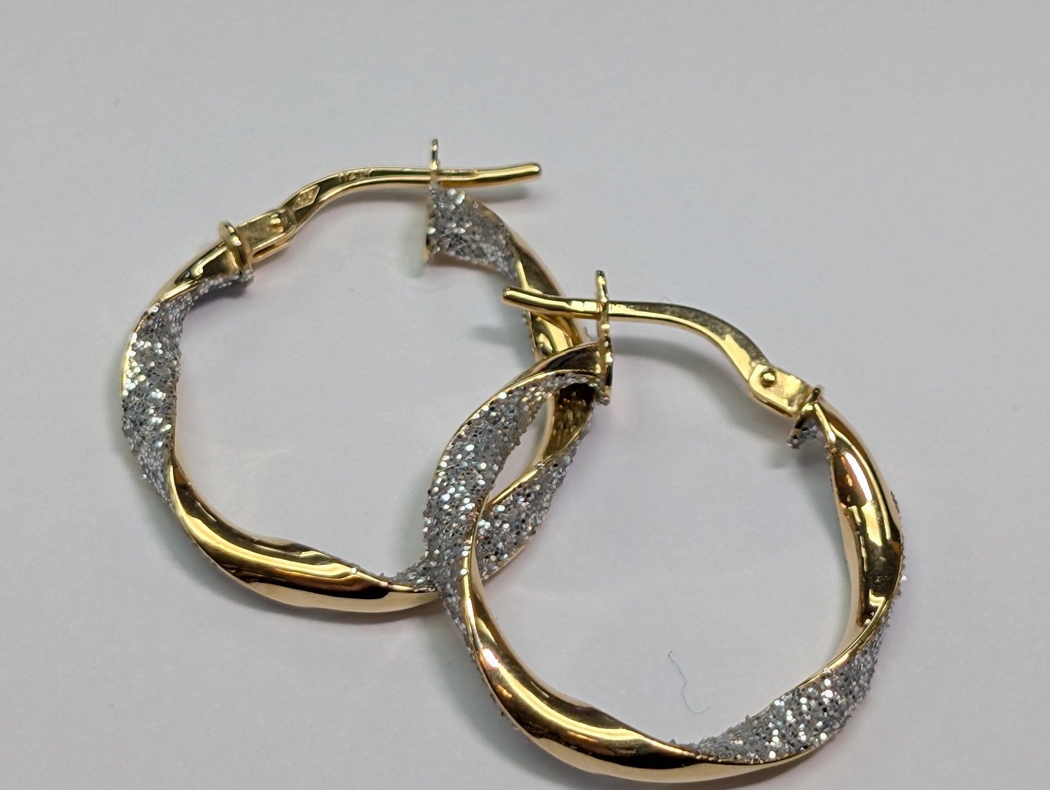 HERE WE HAVE A PAIR OF 9CT GOLD GLITTER EARRINGS. THESE WEIGH 1.01G AND ARE HALLMARKED 375 ** FOR ANY QUERIES PLEASE CALL OUR PRESTON STORE DIRECT MON-SAT 01772 204889
