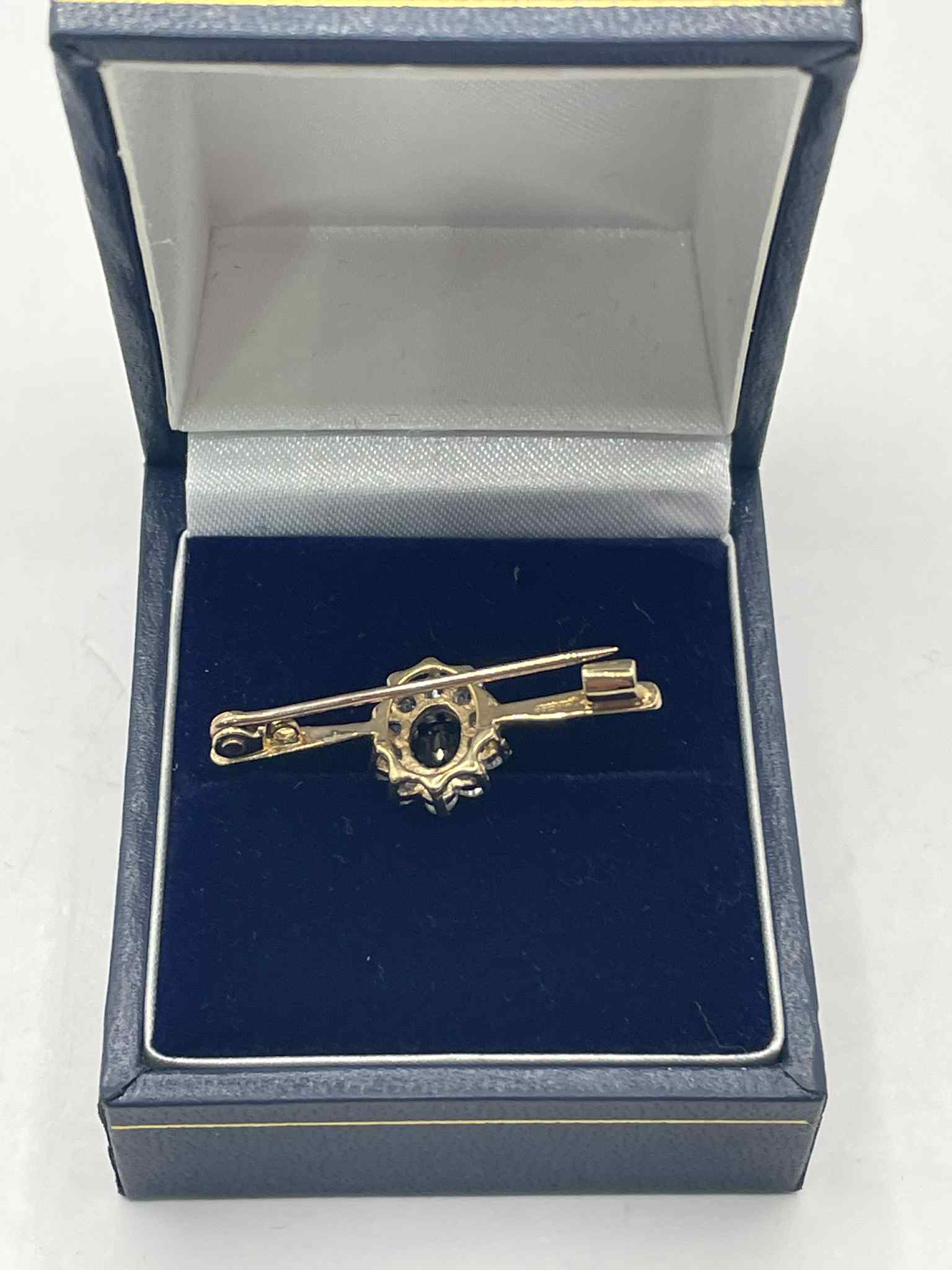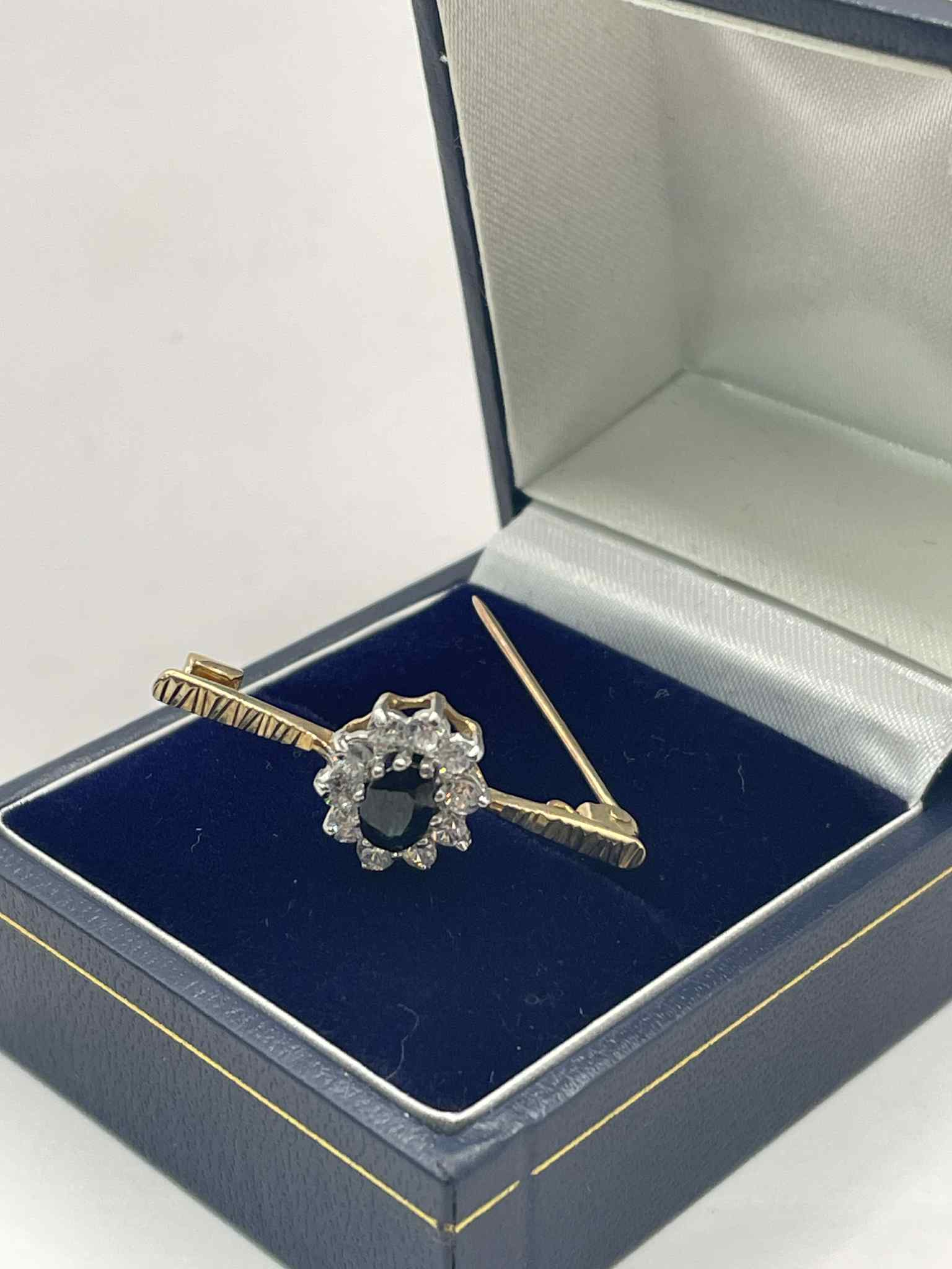 9ct Gold Pin With Black and Clear stones Approx 1.5g Good condition Comes boxed