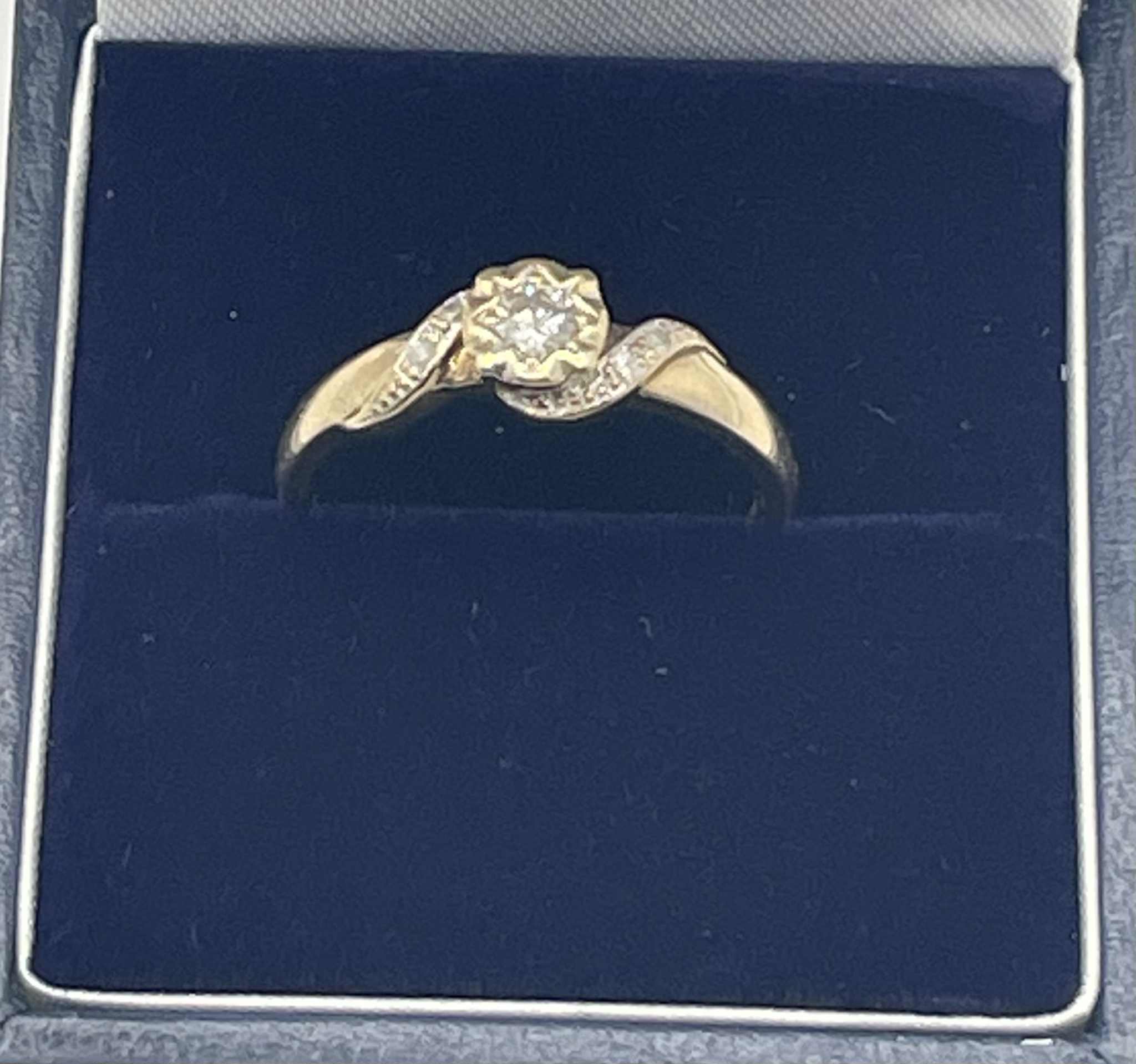 9ct Gold Ring with clear stones Approx 2.6g Size - O Comes boxed Good condition