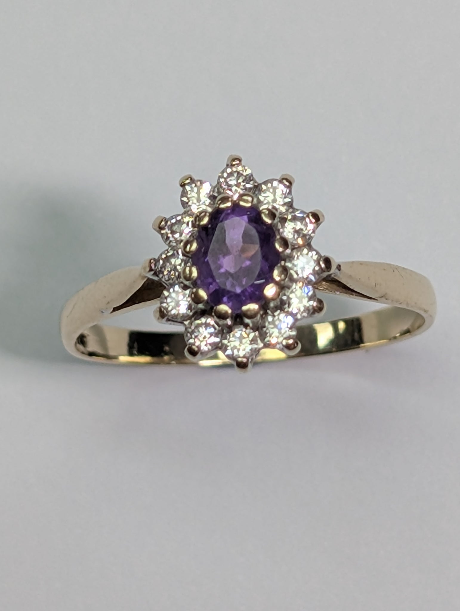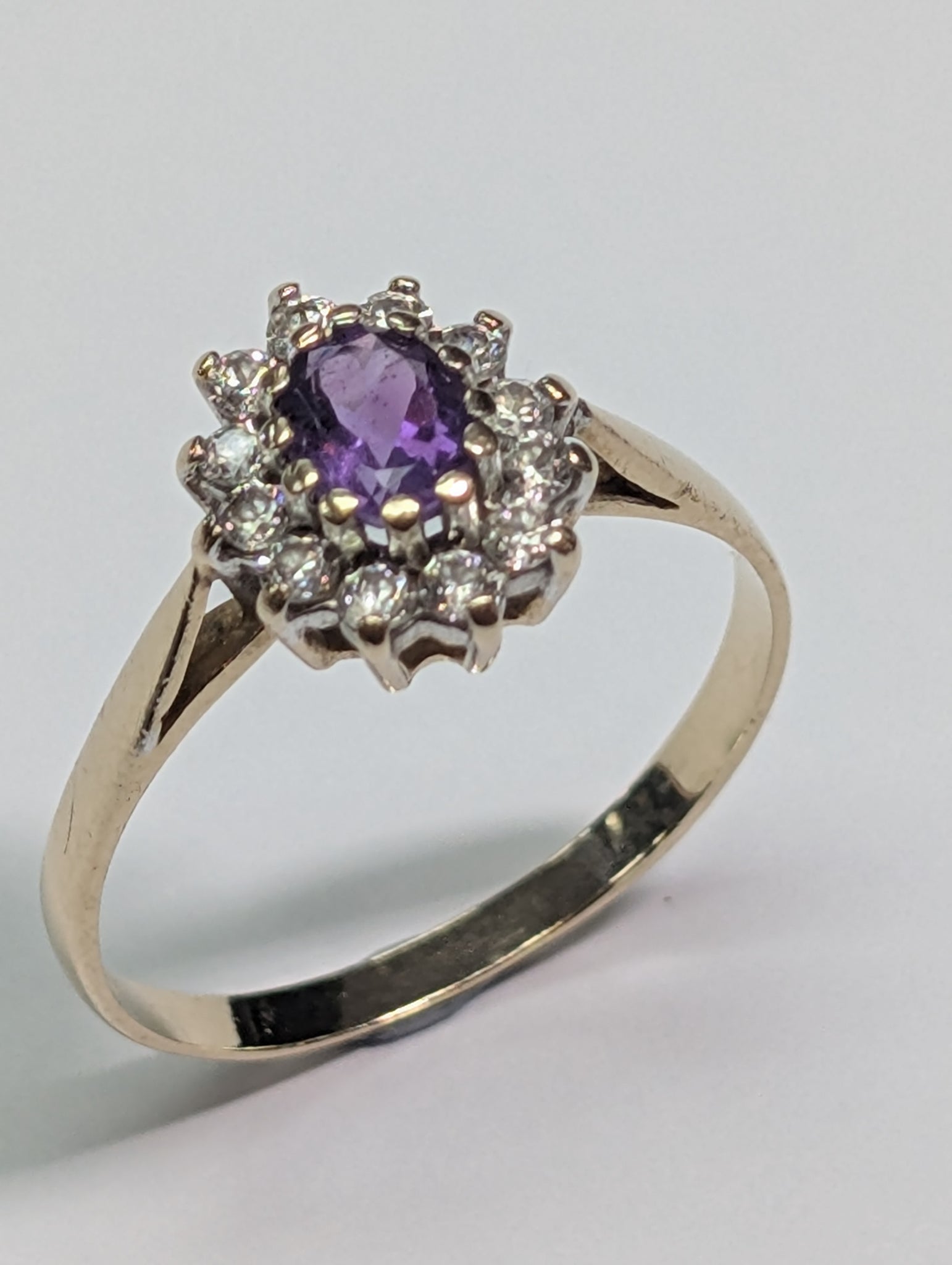 HERE WE HAVE A 9CT GOLD RING WITH A PURPLE CENTRE STONE.. THIS WEIGHS 1.42G AND A SIZE M. ***** FOR ANY QUERIES PLEASE CALL OUR PRESTON STORE DIRECT MON-SAT 01772 204889