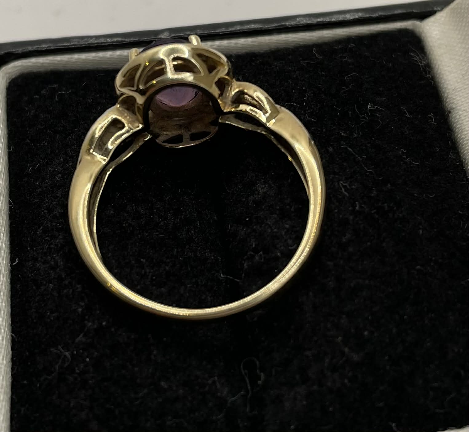 9CT gold ring with purple stone Approximately 2.7g Size: N Good condition