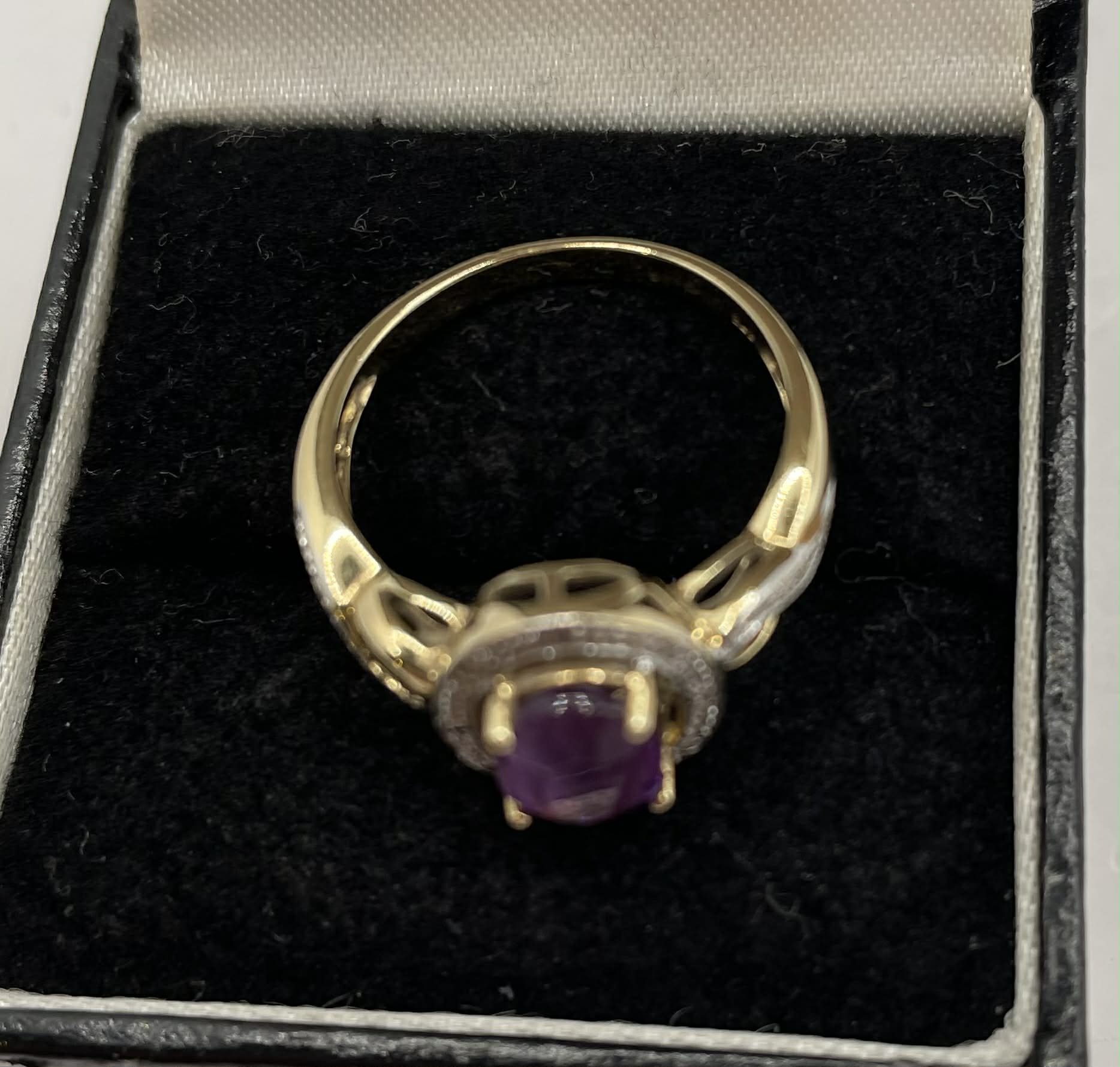 9CT gold ring with purple stone (N)