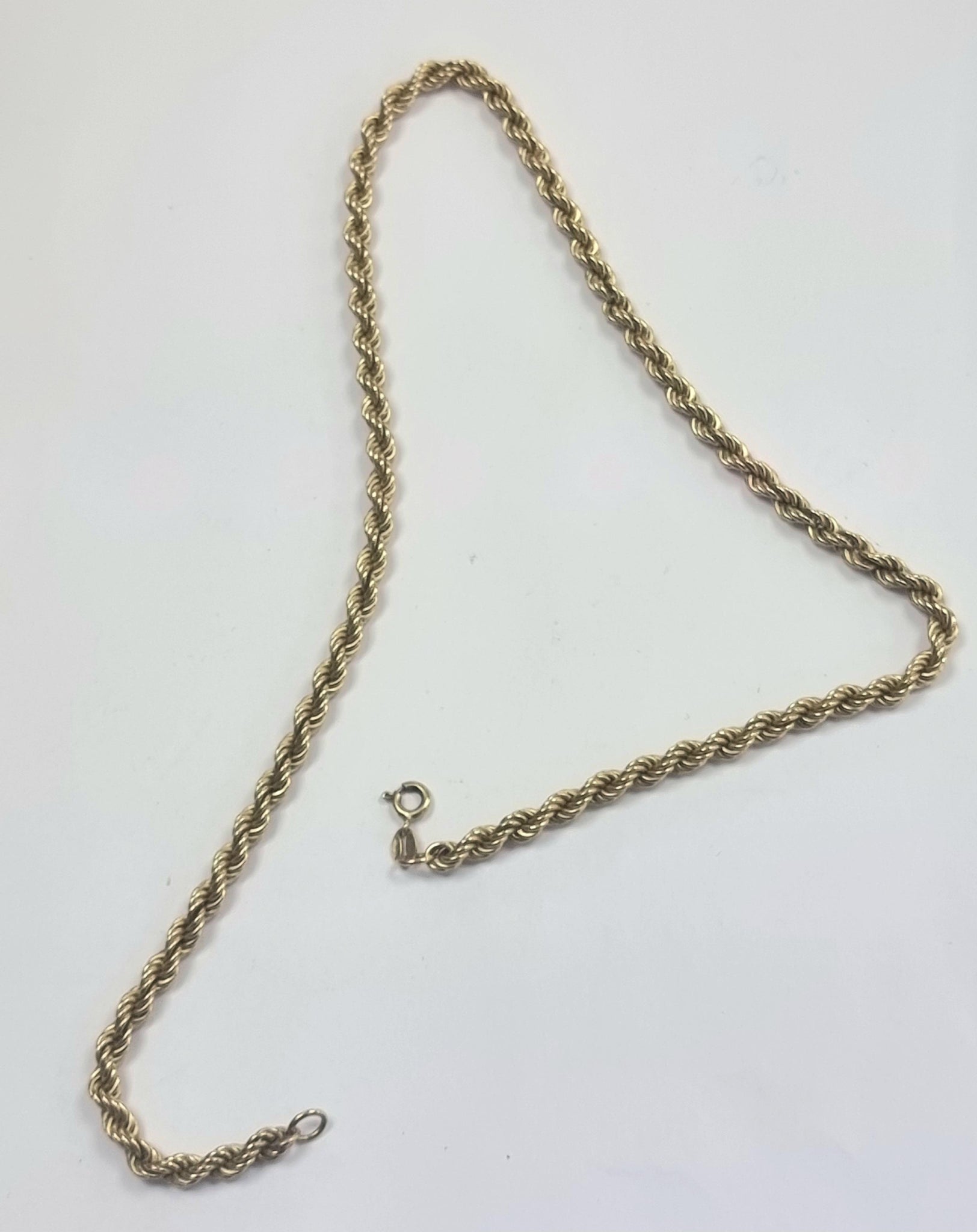 A very nice 9ct rope chain 18" long weighing 9.04 grams