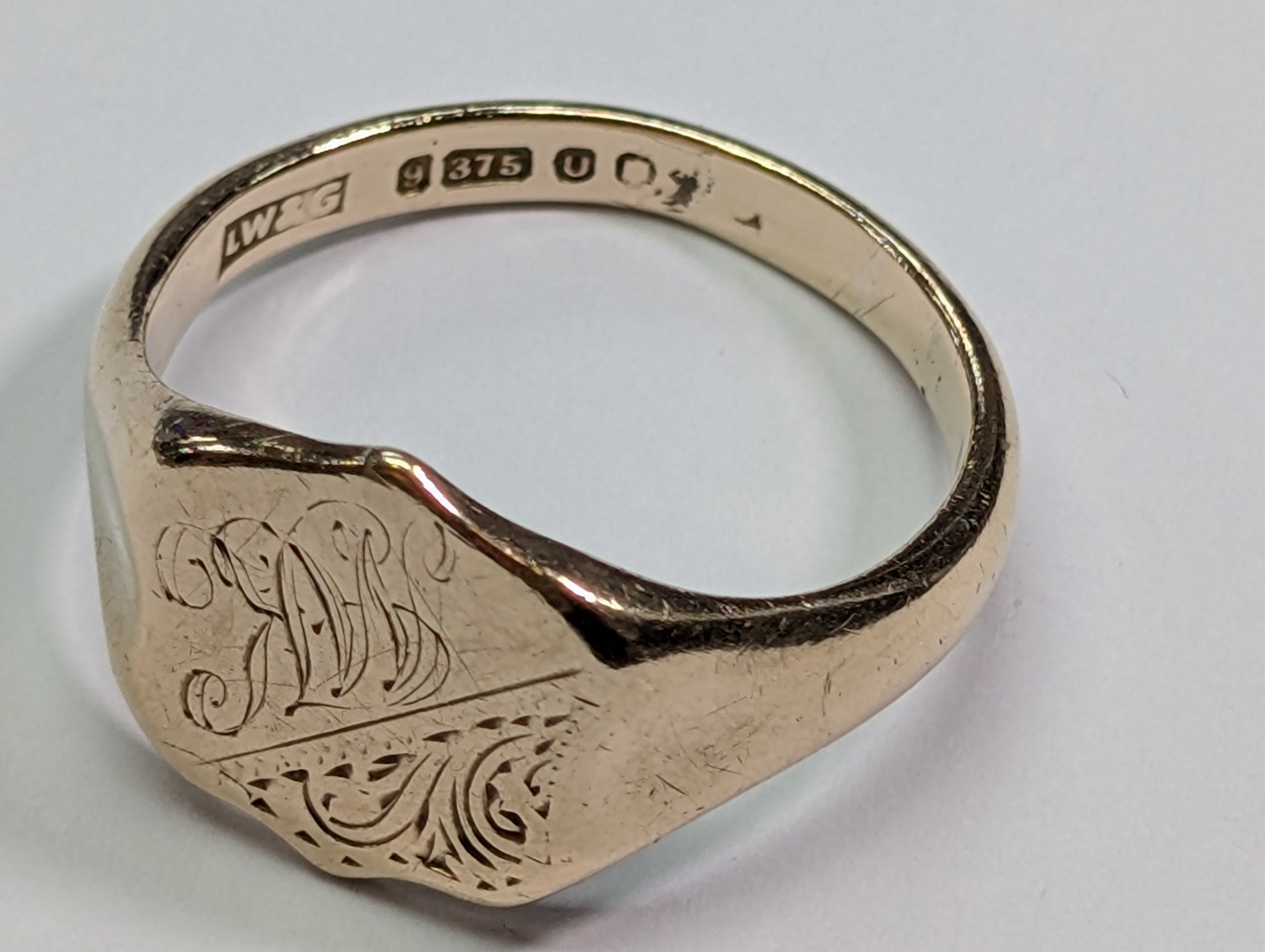 HERE WE HAVE A 9CT GOLD SHIELD RING. THIS RING IS A SIZE W AND WEIGHS 6.32G. COMES UNBOXED AND IN GOOD CONDITION. LETTERS "MK" ENGRAVED ON THE FRONT. ****** FOR ANY QUERIES PLEASE CONTACT OUR PRESTON STORE DIRECTLY MON-SAT AT 01772 204889.