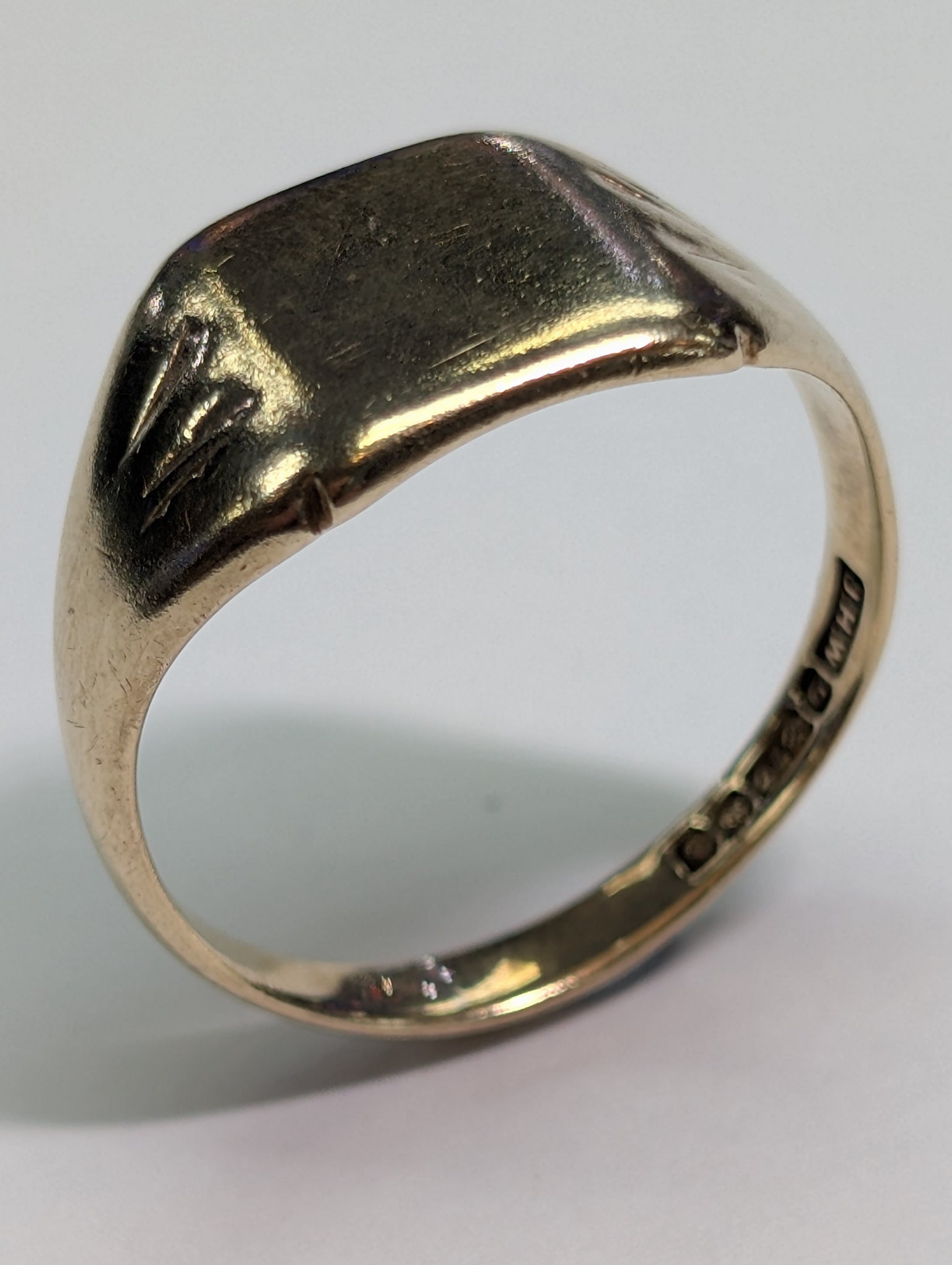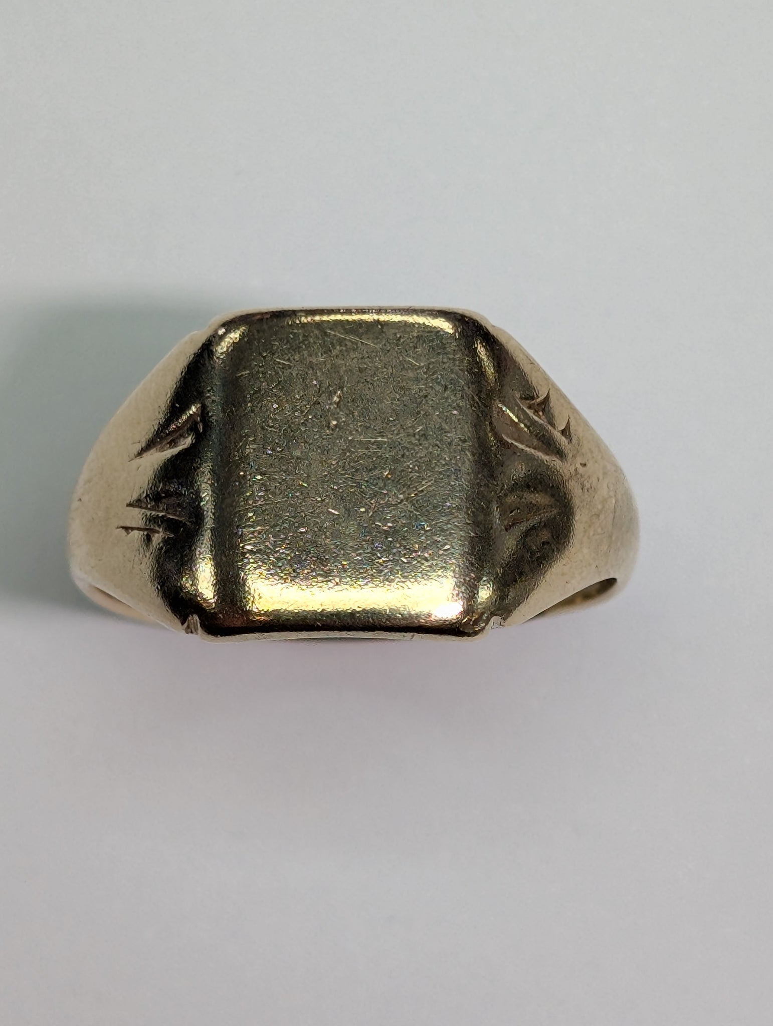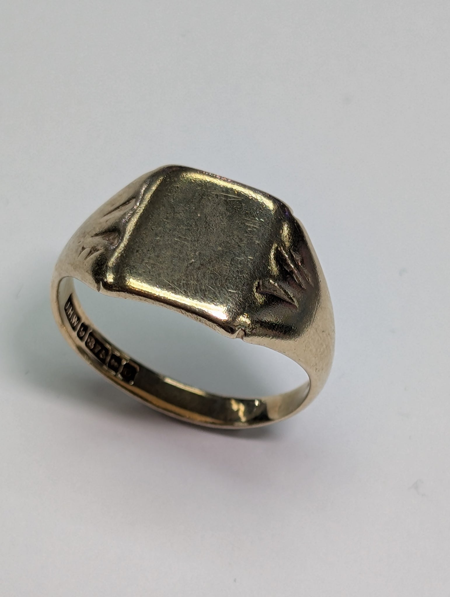 HERE WE HAVE A 9CT GOLD SIGNET RING. THIS WEIGHS 5.86G AND A SIZE V. *** FOR ANY QUERIES PLEASE CALL OUR PRESTON STORE DIRECT MON-SAT 01772 204889