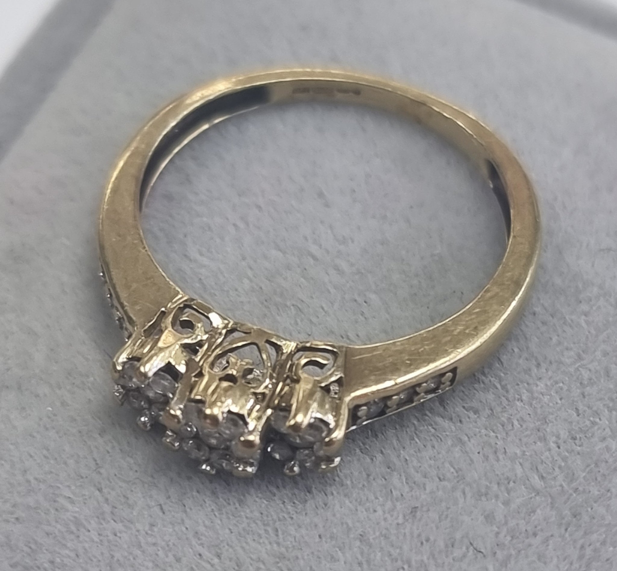 9ct Gold Triple Diamond Cluster Ring Size M1/2