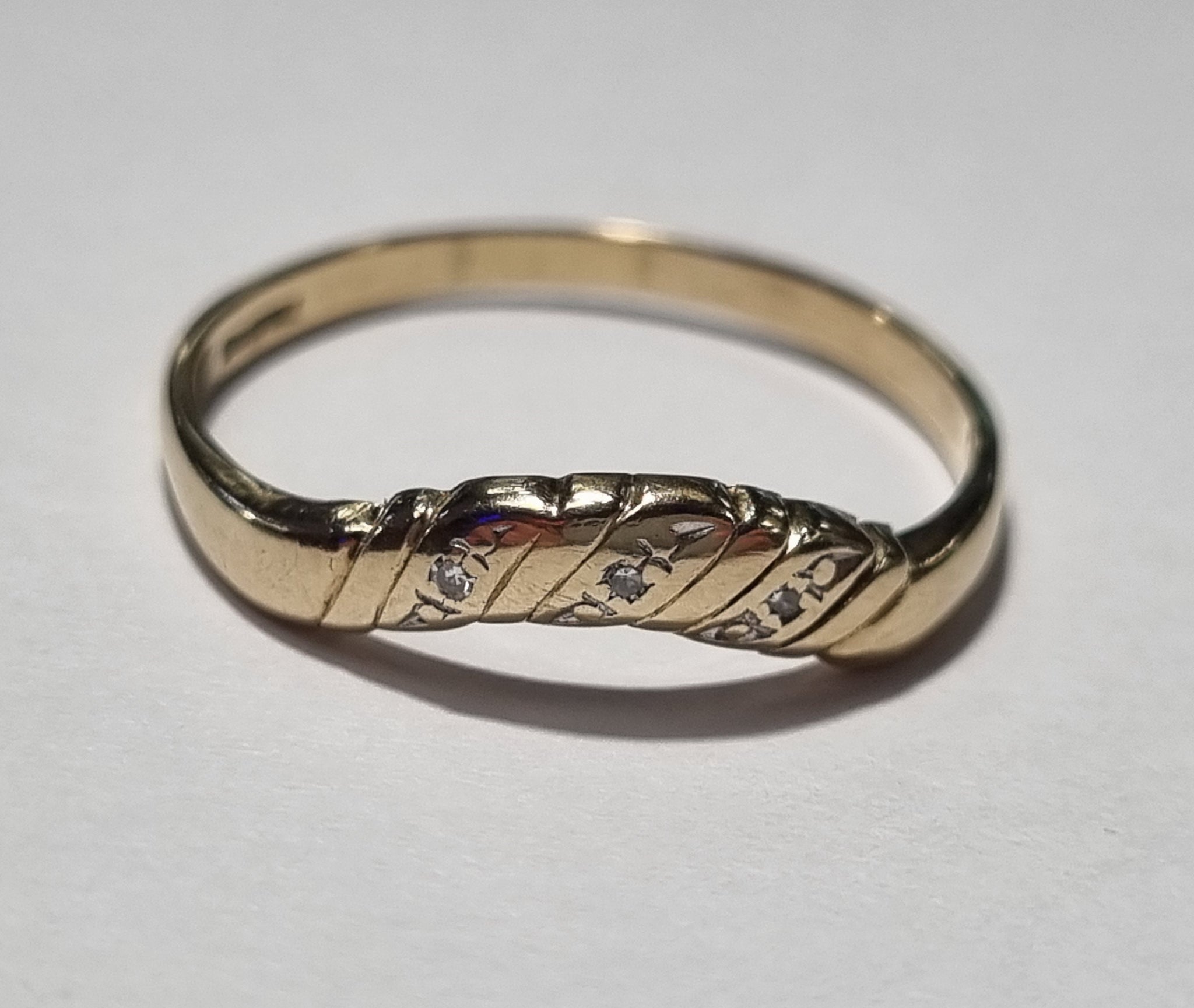 9ct gold ring with small diamond chips. Size U 1/2 *********************** For more information regarding this item call our Chorley store on 01257 752333 open Mon-Sat between 9:30am-5pm