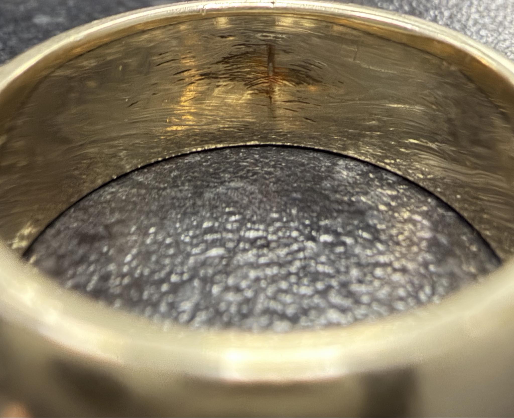 The ring is in good condition but shows signs of wear, the inside of the wedding band has a deep scratch. The ring has been profesisonally cleaned and polished.