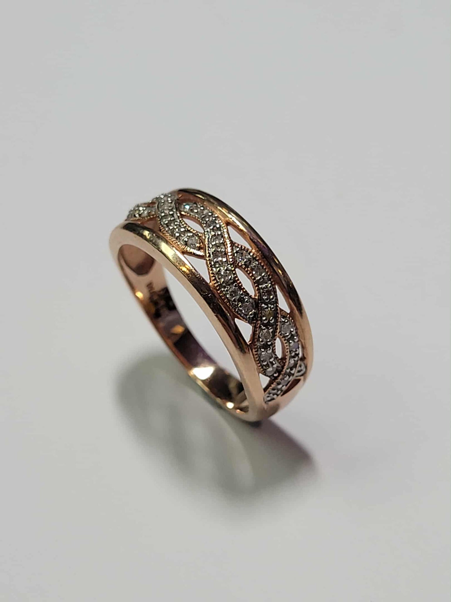 9ct Rose Gold Diamond Ring - Size O 1/2