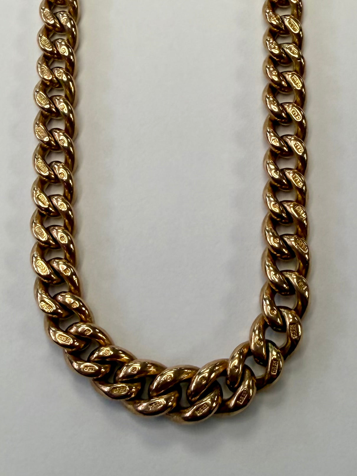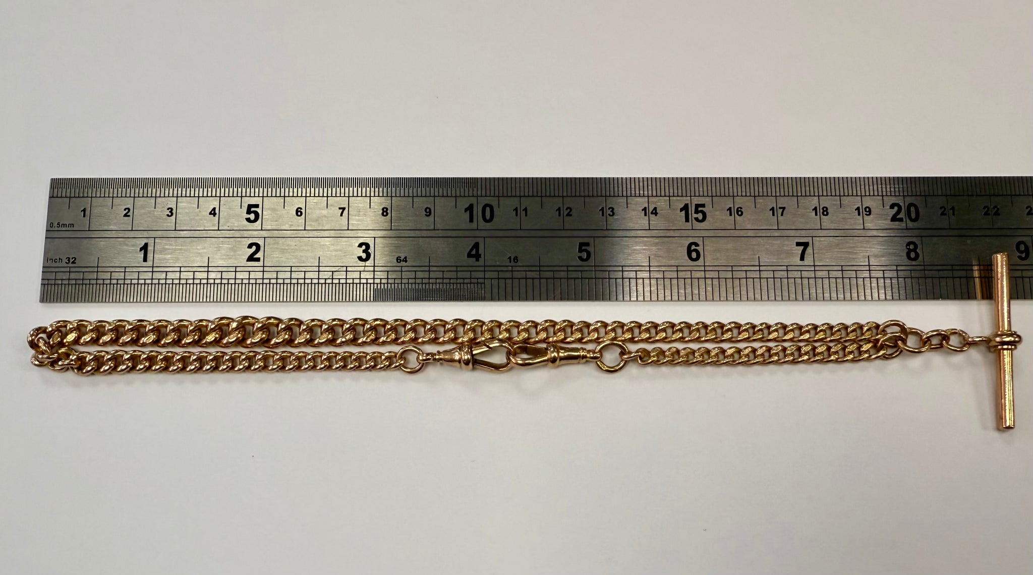 Here we have a 9ct rose gold vintage double albert chain, this is hallmarked on every link along with the T-bar. The chain is 16” inches long and weighs 40.62 grams. ** For any queries please contact our Chorley store direct on 01257 752333