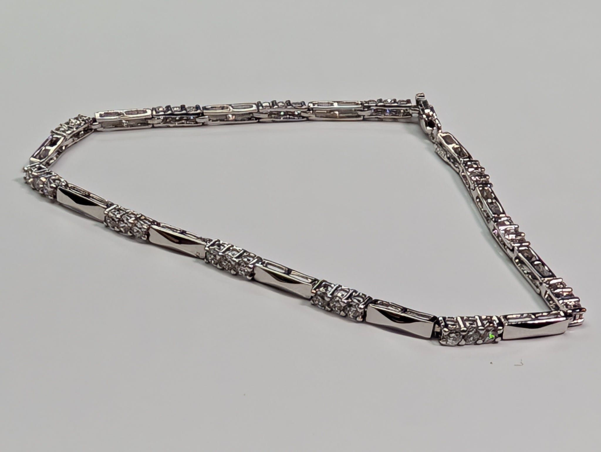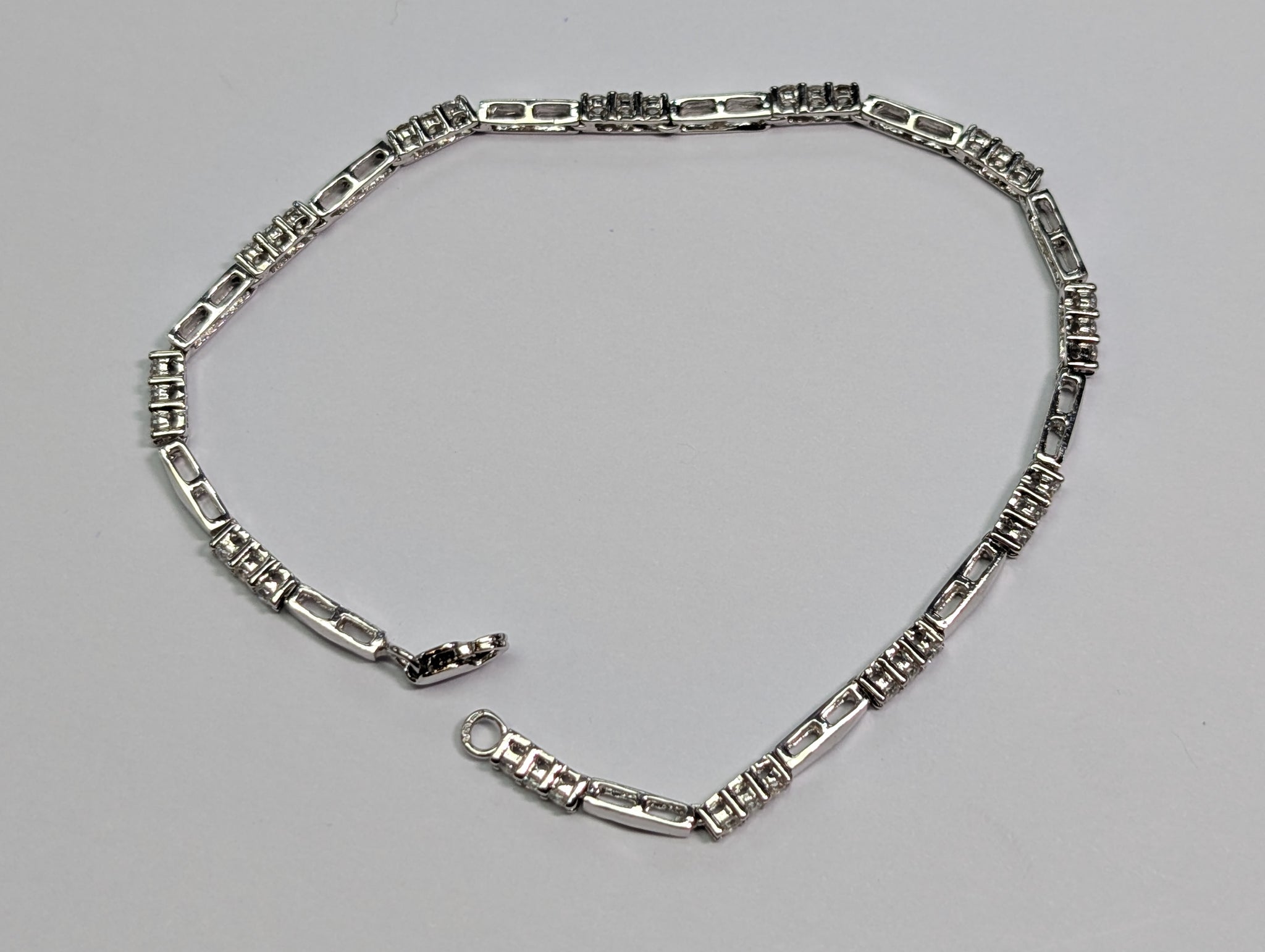 HERE WE HAVE A 9CT WHITE GOLD BRACELET WITH CZ STONES. THIS WEIGHS 5.53G AND MEASURES 7.5" LONG. ** FOR ANY QUERIES PLEASE CALL OUR PRESTON STORE DIRECT MON-SAT 01772 204889