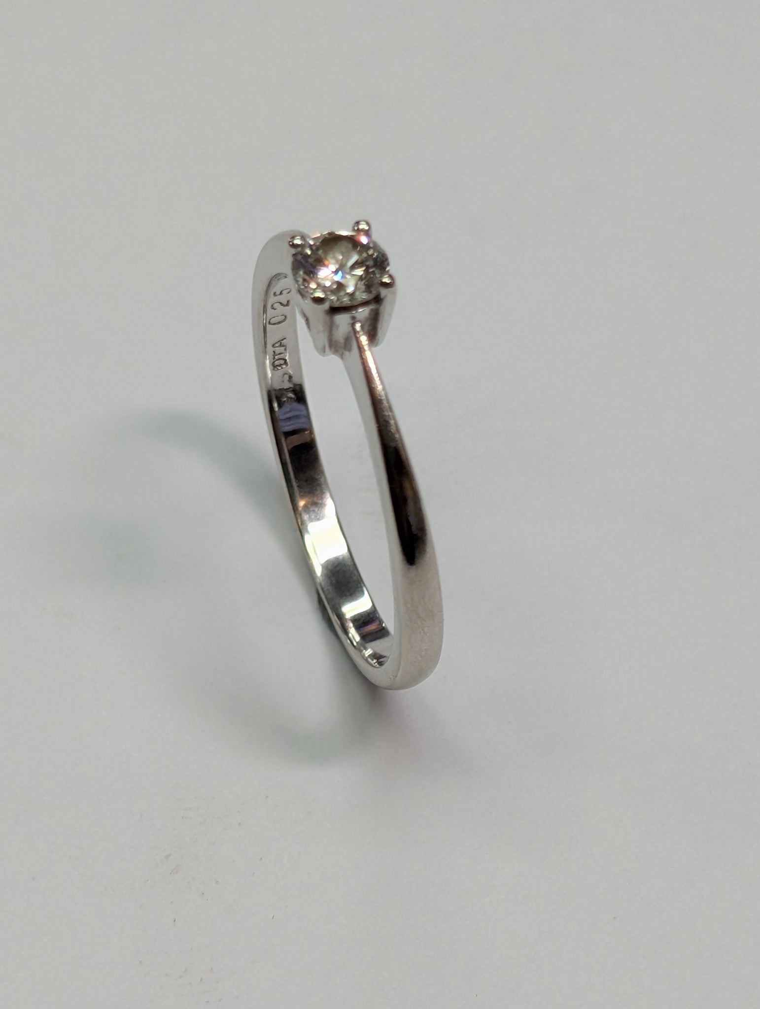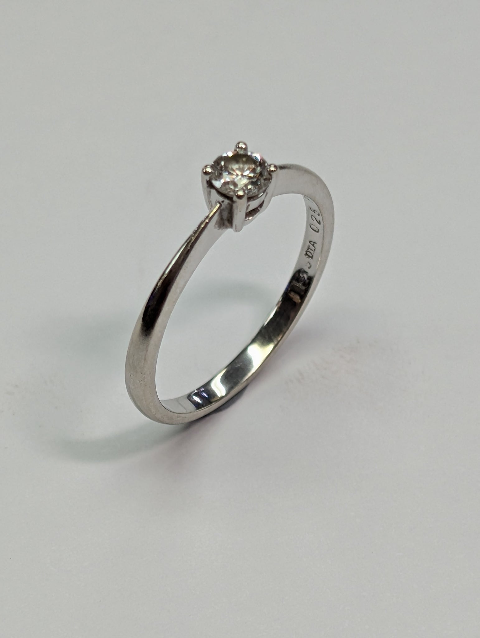 HERE WE HAVE A 9CT WHITE GOLD SINGLE DIAMOND ENGAGEMENT RING. THIS IS A SIZE N 1/2 AND WEIGHS 1.76G. THE DIAMOND IS .25 PTS (QUARTER OF A CARAT) ** FOR ANY QUERIES PLEASE CALL OUR PRESTON STORE DIRECT MON-SAT 01772 204889
