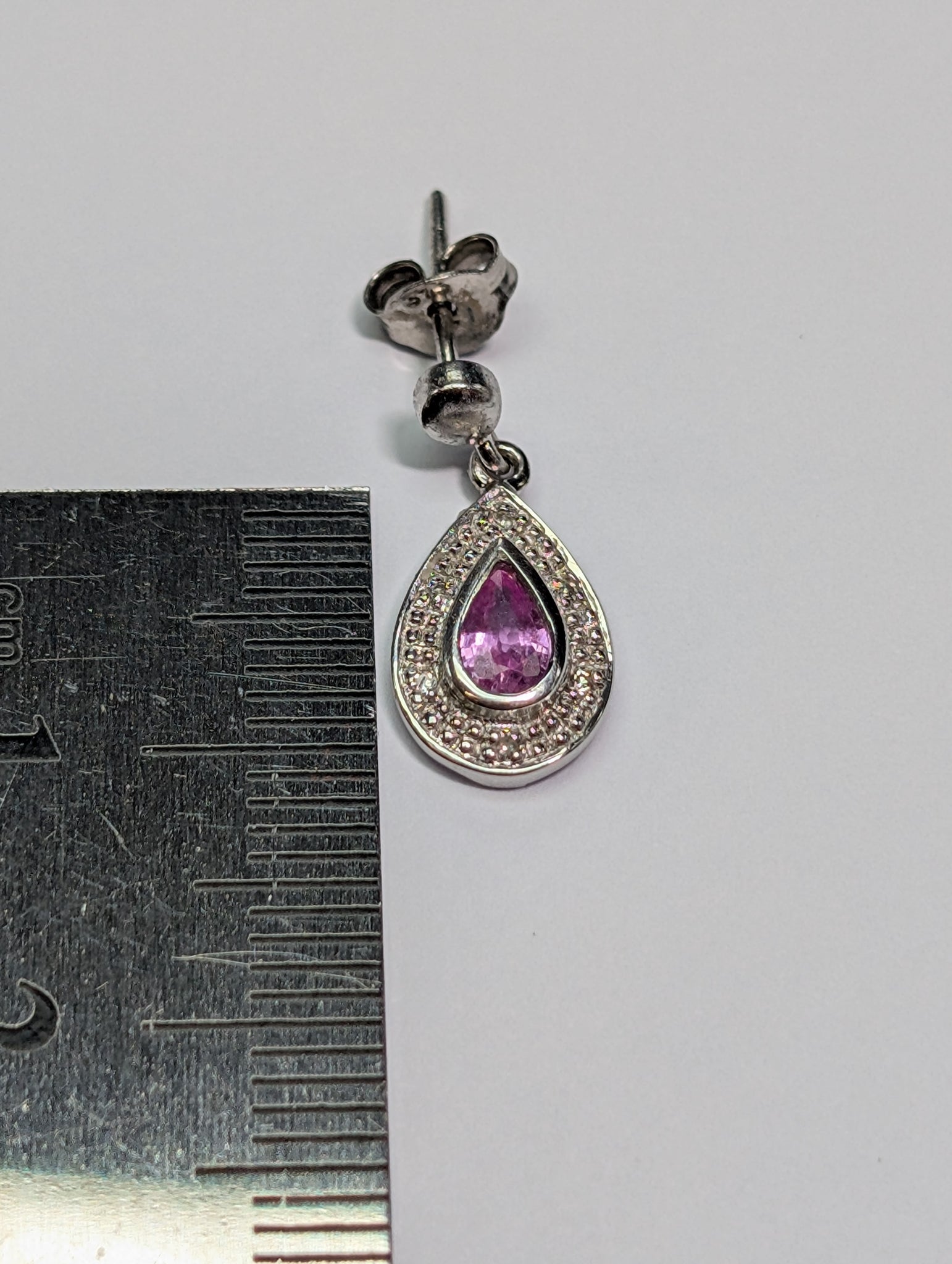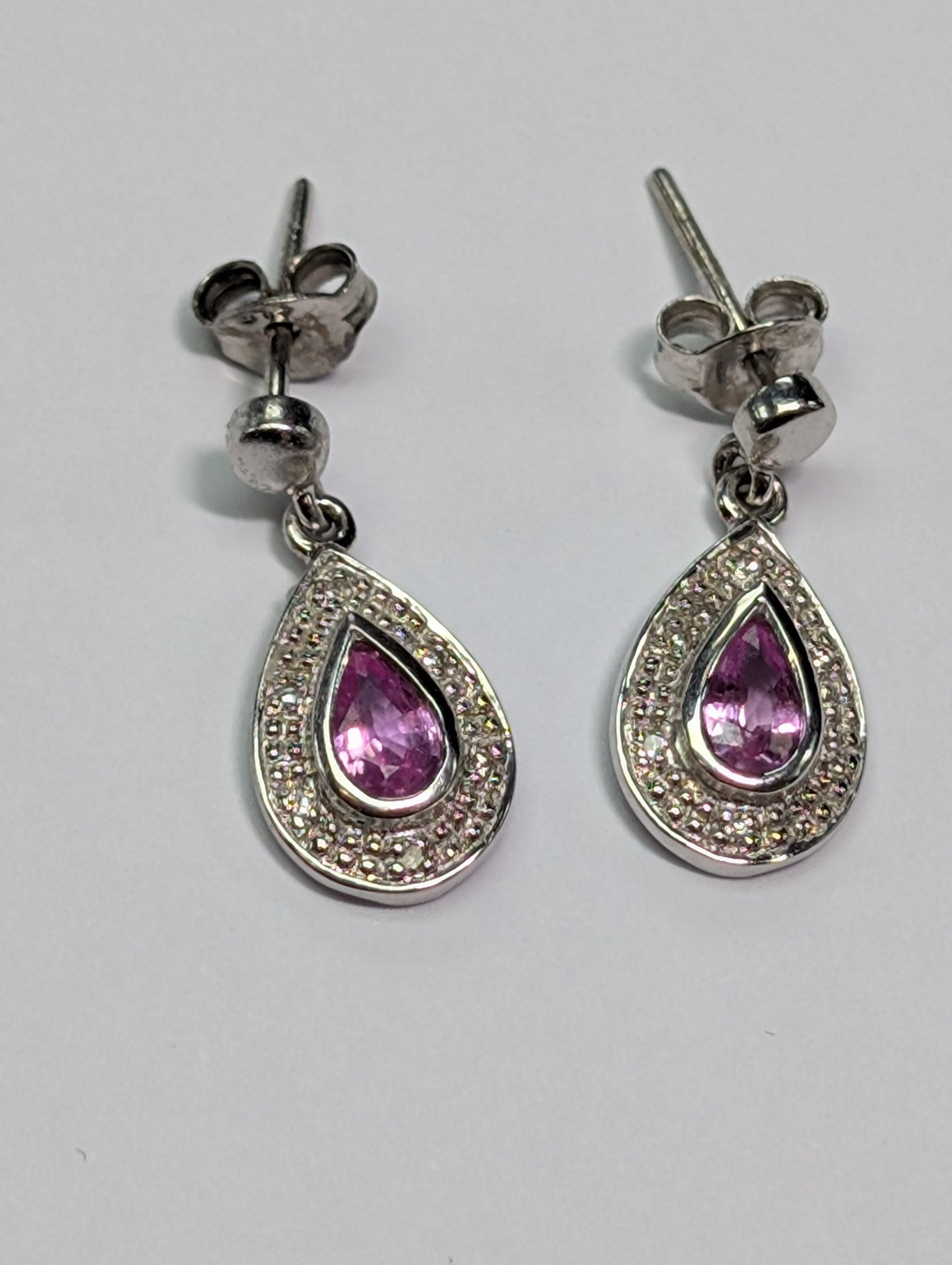9ct White Gold Diamond & Pink Stone Tear Drop Earrings