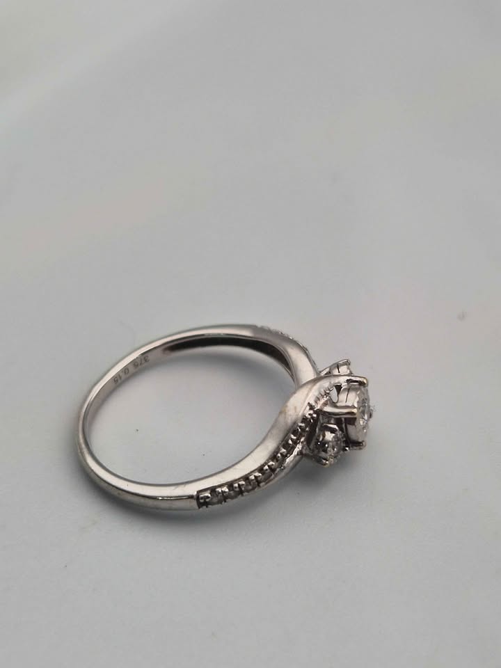 9ct White Gold Diamond Solitaire Ring - 0.15ct Dia - Size K - 1.83 Grams