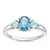 9ct White Gold London and Swiss Blue Topaz Oval and Pear Cut Three Stone Ring RRP £499.99