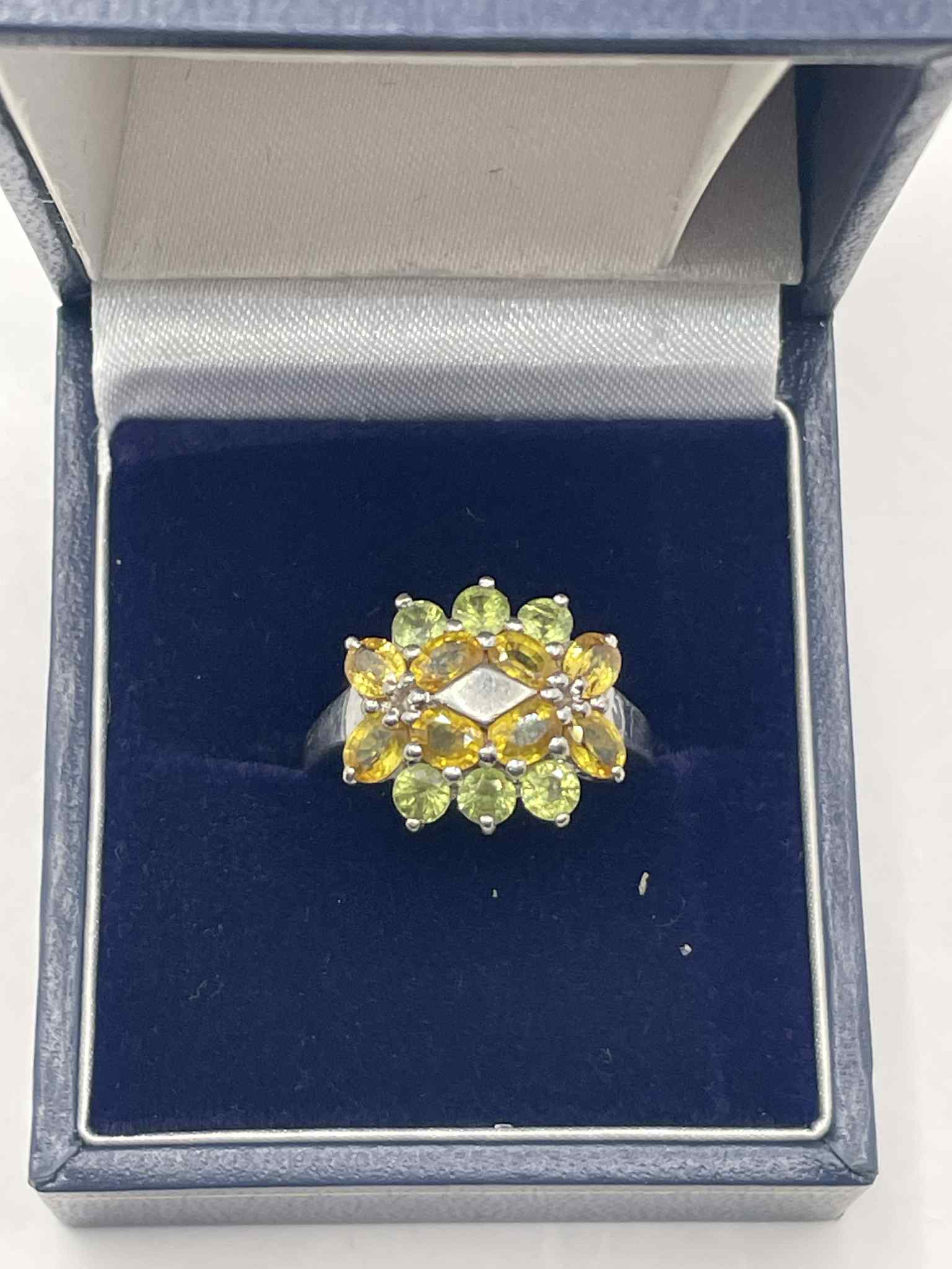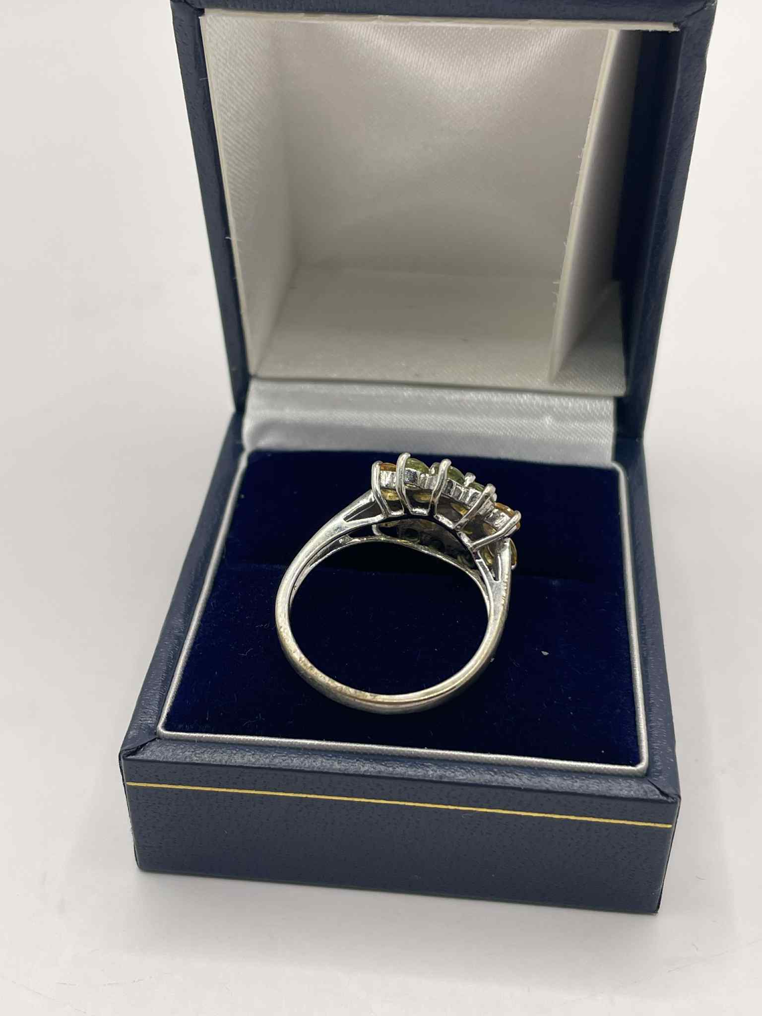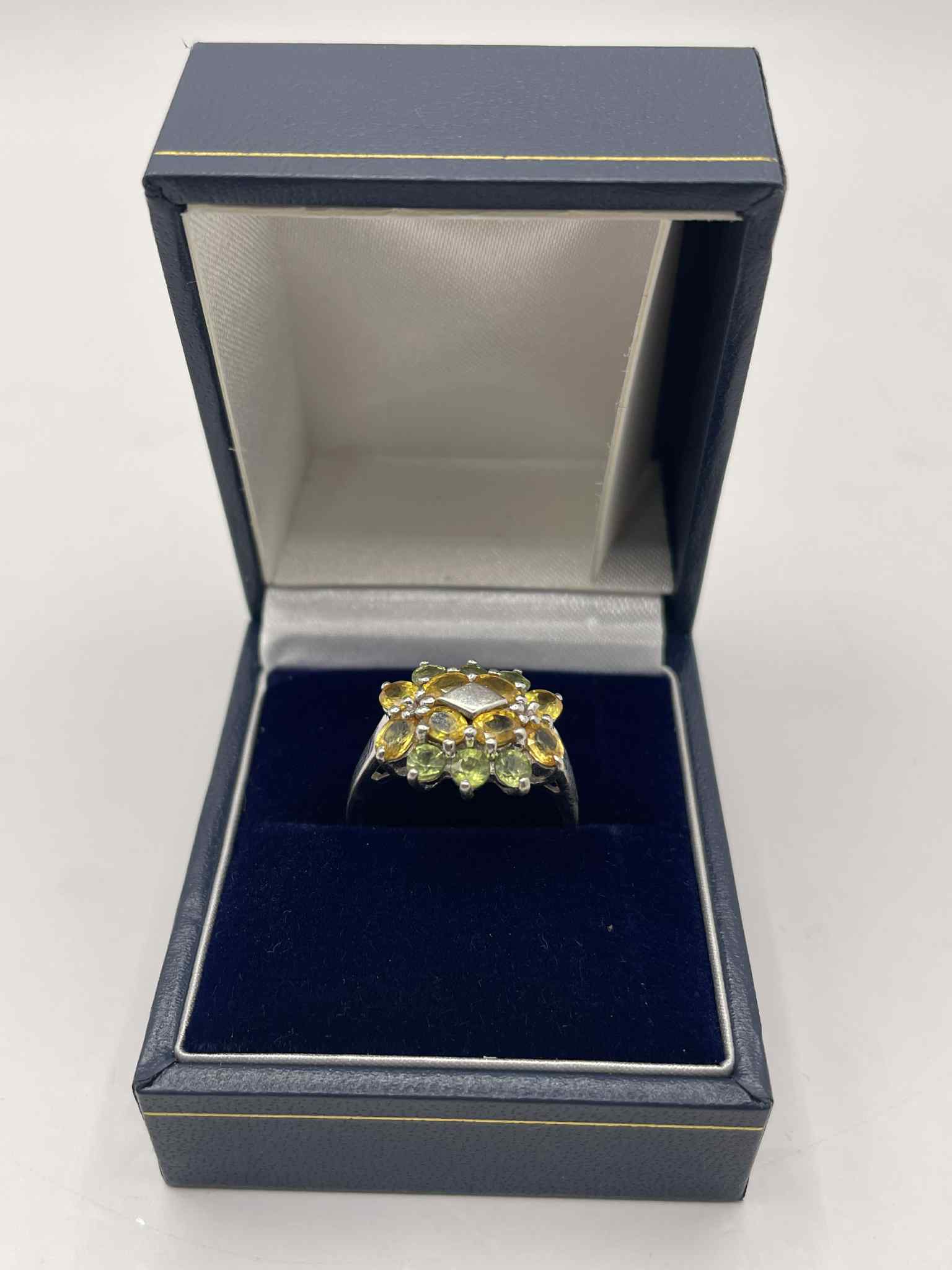 9ct White Gold Ring With Yellow & Green stones Approx 4.2g Size O