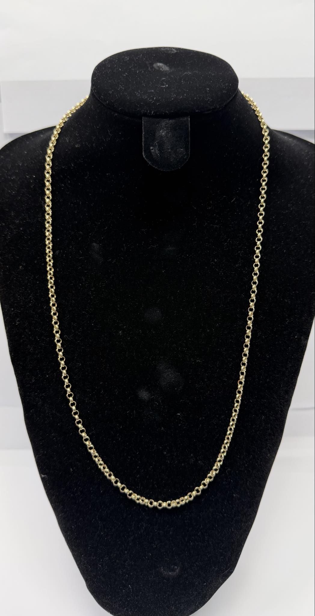 A 9ct gold belcher chain that weighs 17.9 grams, which is 26.5 inches long and is 3mm's wide. The chain is in great condition with minor signs of wear. The chain has been professionally cleaned and polished. The belcher chain is hallmarked and tested. Boxed - Delivery or Collection **Click and Collect from the Handsworth Branch**