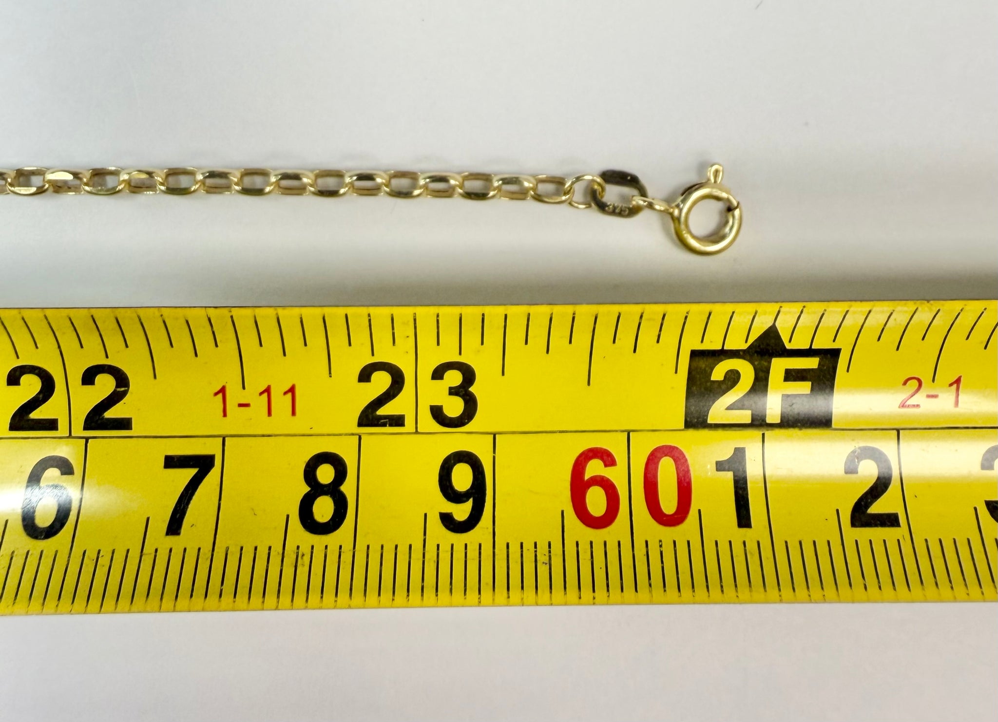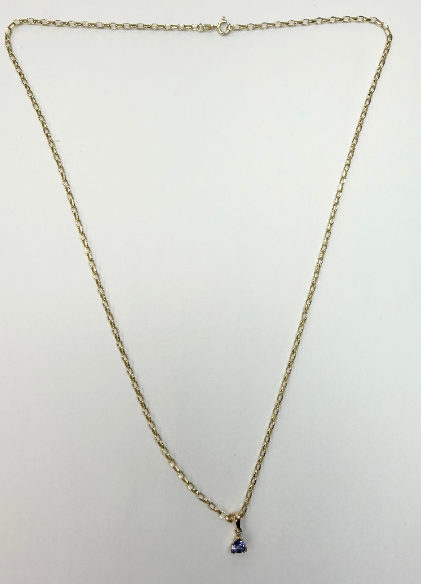 This goegeous 9ct belchor chain comes with a pendant with a blue stone, it is in good condition, the total weight is 3.6 grams and is a length of 24"