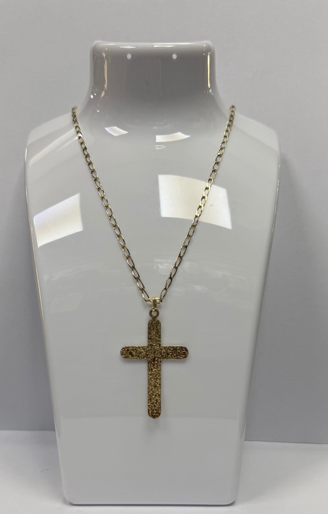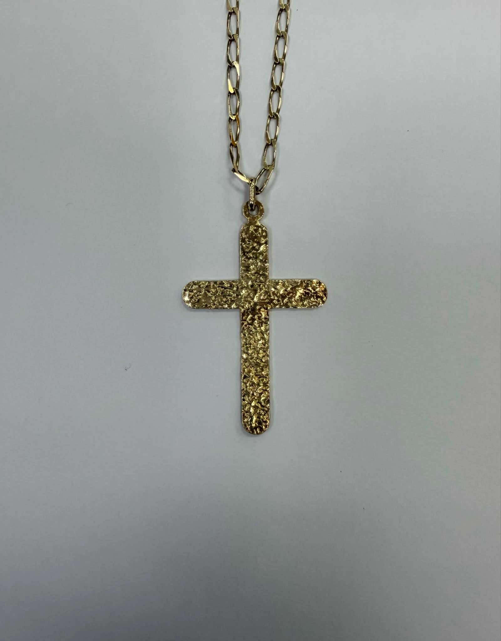 The chain and pendent are in brilliant condition with minimalistic signs of wear. The clasp of the chain has a 375 hallmark stamp. The chain and cross pendent have been professionally cleaned and polished.