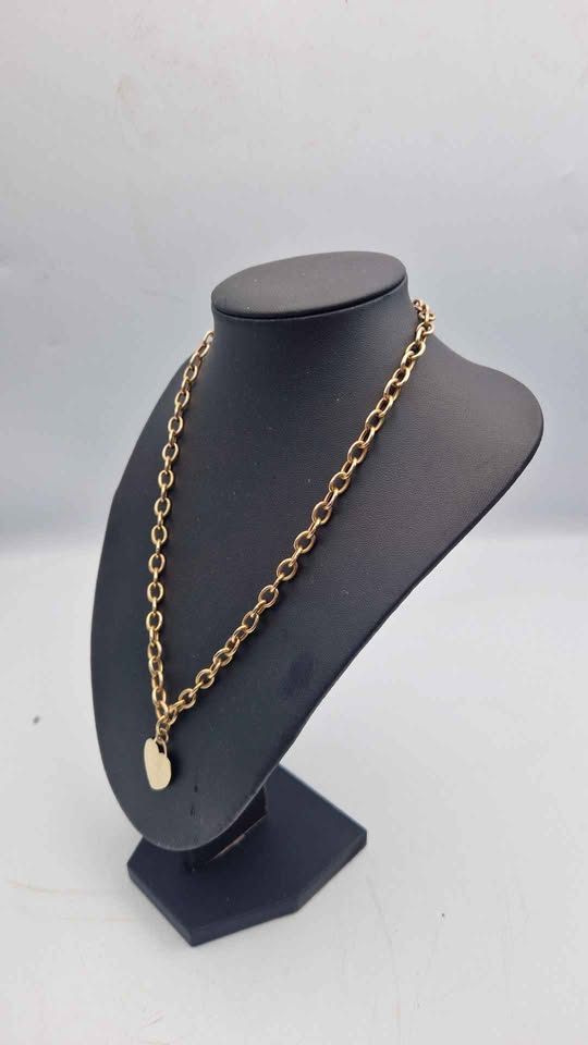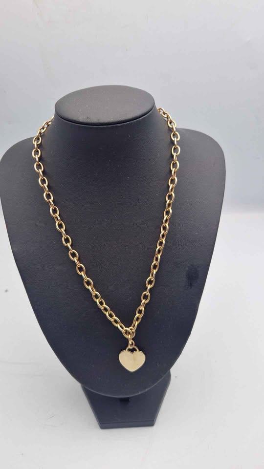 9ct Yellow Gold Chunky Chain Necklace With Heart Pendant - 18" Long - 13.01 Grams
