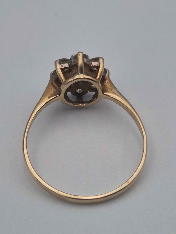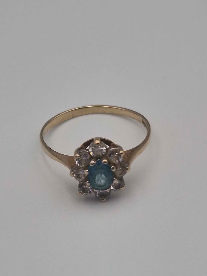 9ct Yellow Gold Cubic Zirconia Cluster Ring - Size N - 1.65 Grams