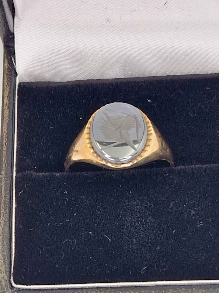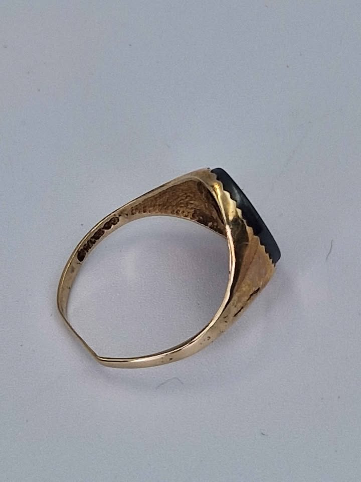 9ct Yellow Gold Hematite Intaglio Men's Signet Ring - Size Q - 2.50 Grams