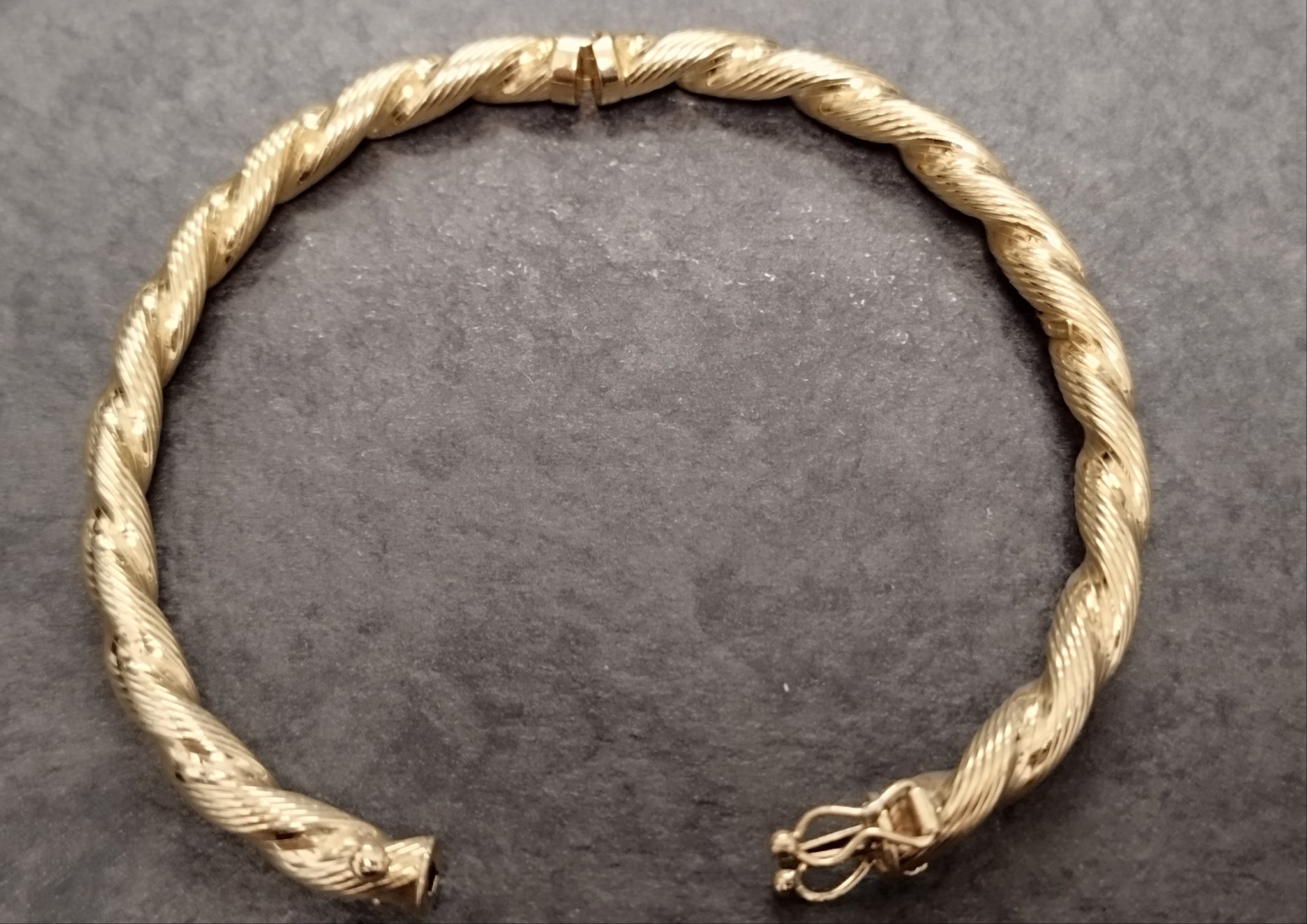 9ct Yellow Gold Ladies Hinged Bangle 63.5mm inside diameter -4-5mm width