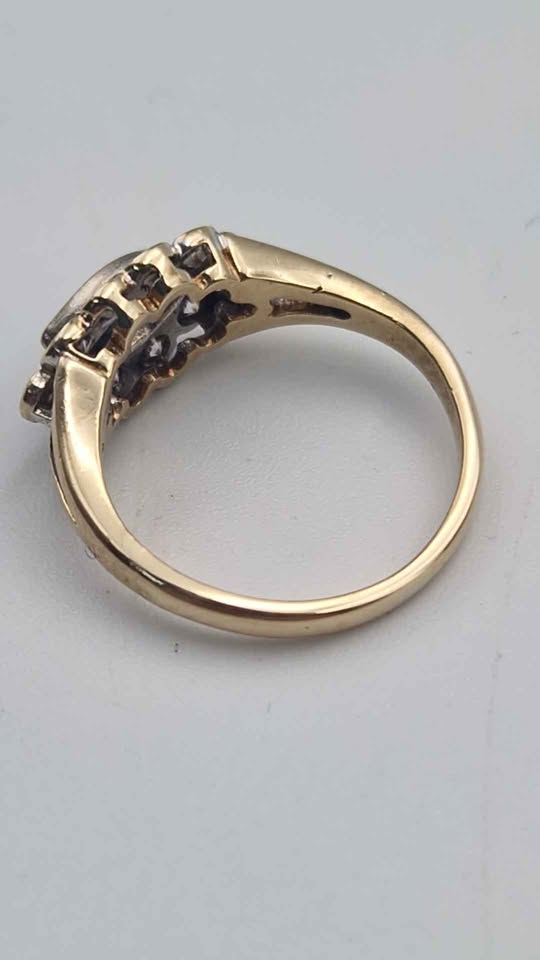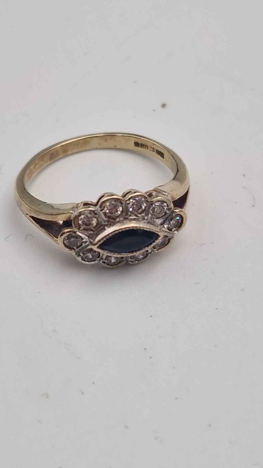 9ct Yellow Gold Ladies With Black & Clear CZ Stones - Size J - 2.27 Grams