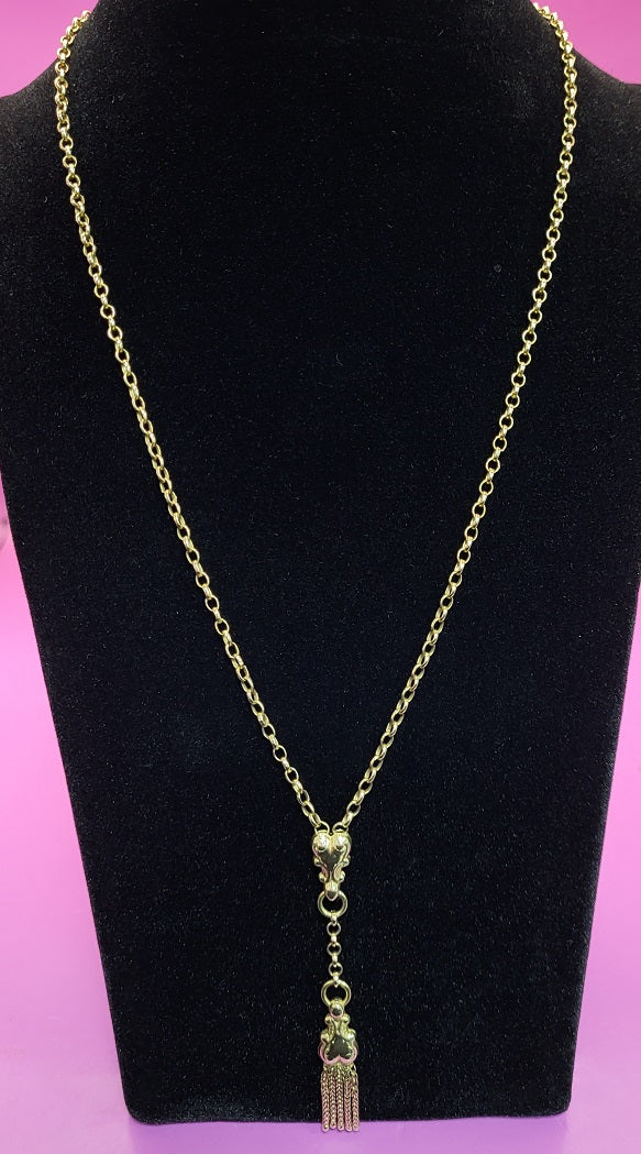 9ct yellow gold Loop Link chain With Tassel - 10.14G - 20 - 24" The chain is 20", but hangs at 24" with the tassel
