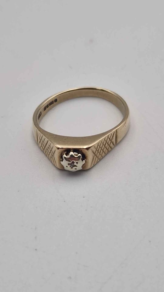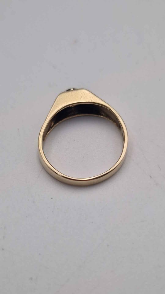 9ct Yellow Gold Mens Signet Ring With CZ Stones - Size N - 2.25 Grams
