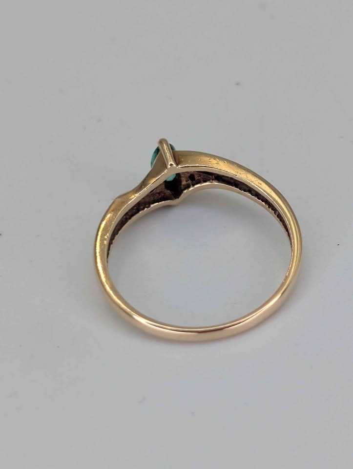 9ct Yellow Gold Ring With Green & Clear CZ Stones - 2.22 Grams - Size P