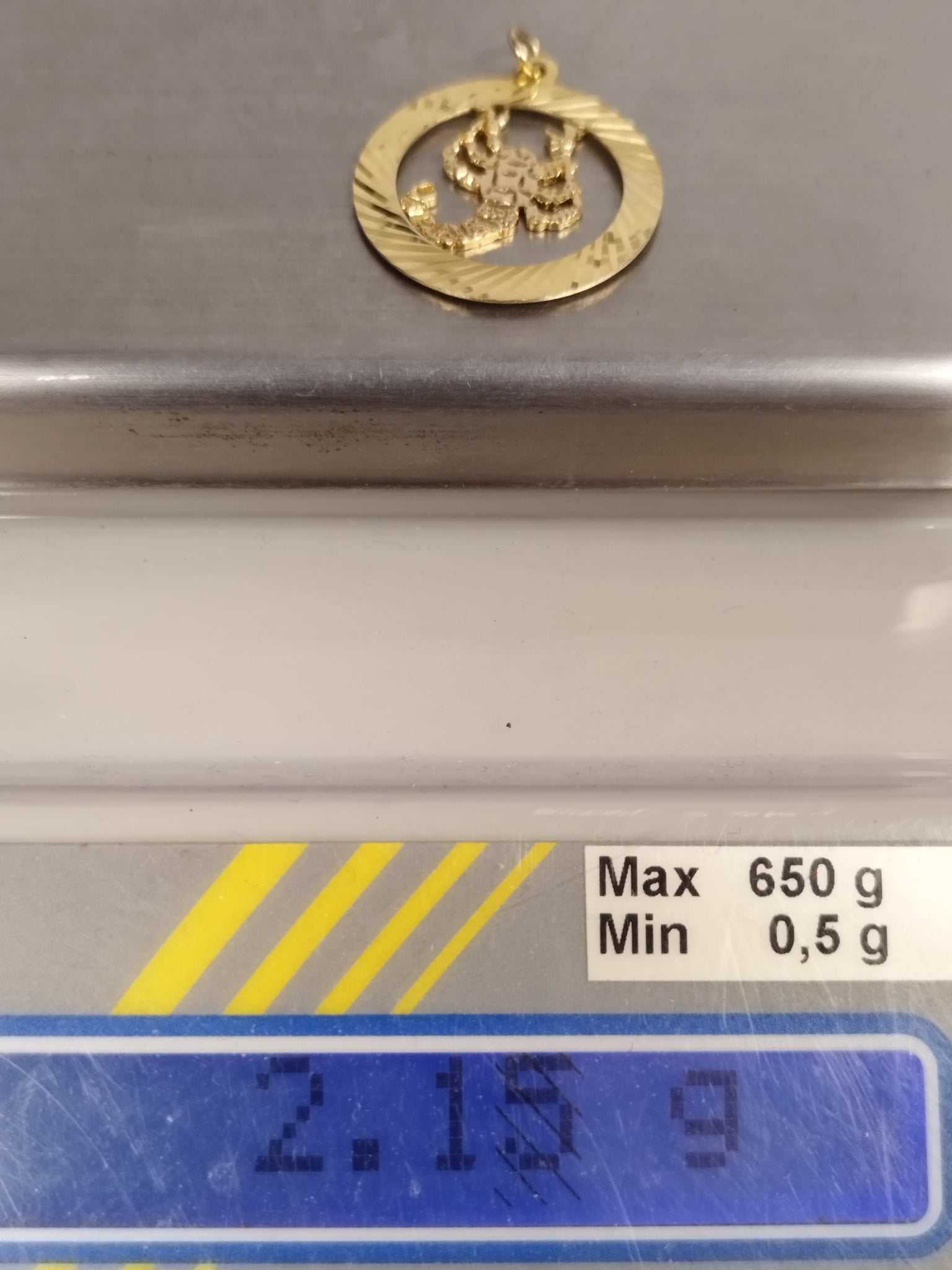 9ct yellow gold 'Scorpio' zodiac ring pendant. Textured & diamond cut finishes.