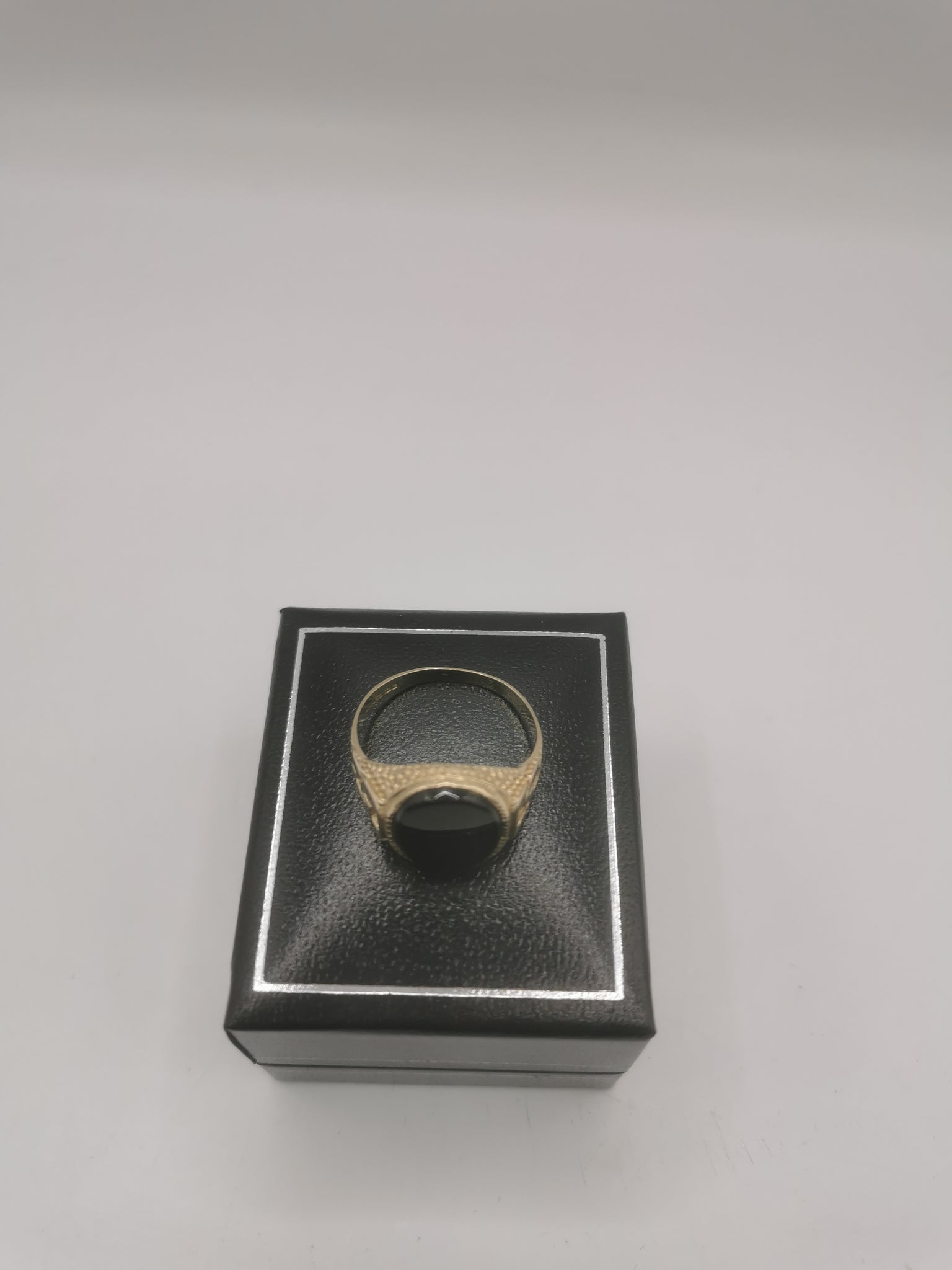 9K Gold Ring with Black Stone 3.9G Hallmarked and Tested Size W