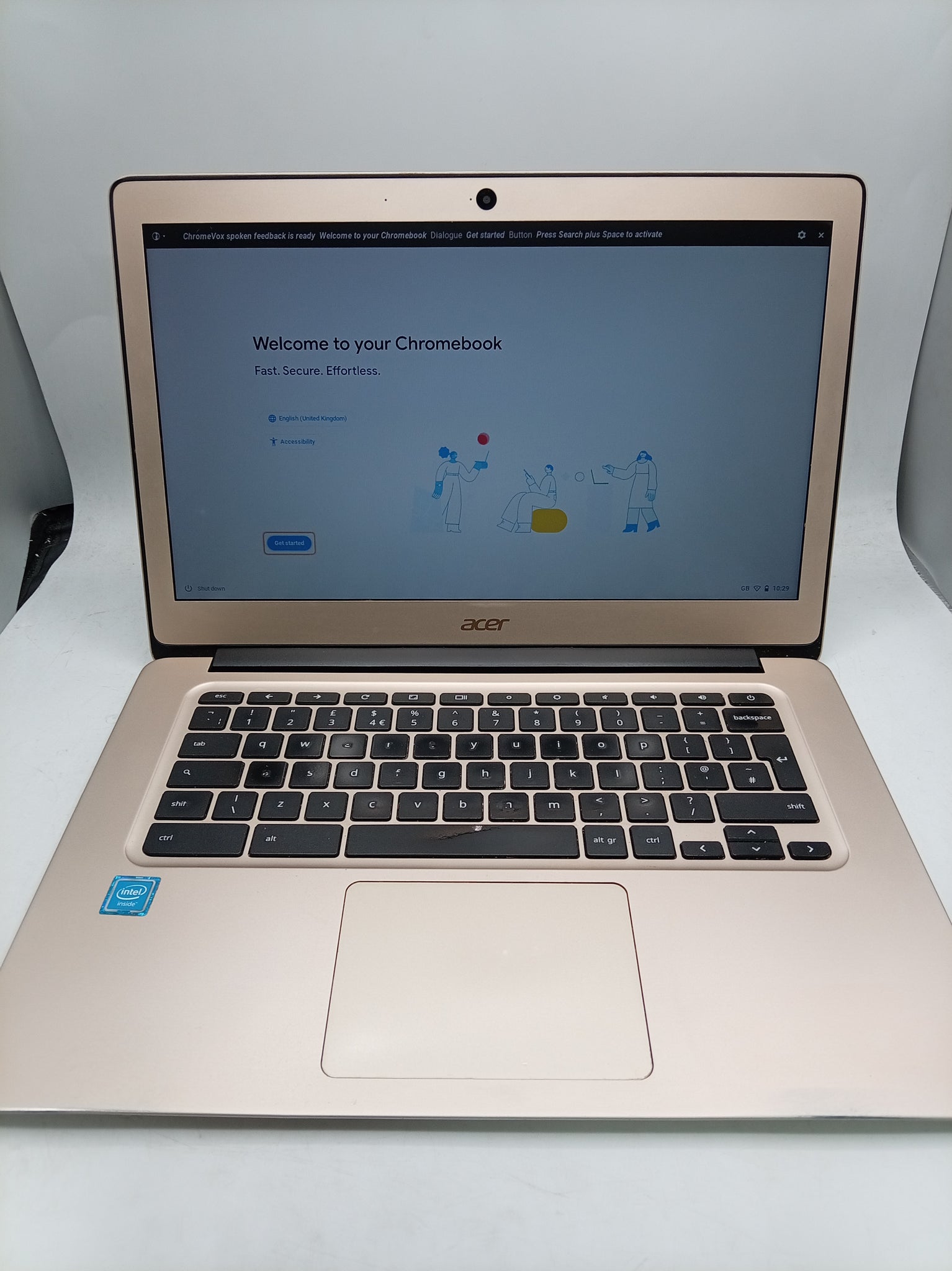 Brand acer Product Dimensions 23.66 x 34.1 x 1.7 cm; 1.55 kg Item model number CB3-431-C4RC Manufacturer Acer Series Chromebook CB3-431-C4RC Colour Gold Form Factor Notebook Standing screen display size 35.56 Centimetres Screen Resolution 1920 x 1080 pixels Resolution 1920x1080 Processor Brand Intel Processor Type None Processor Speed 1600 MHz Processor Count 4 RAM Size 4 GB Computer Memory Type DDR3 SDRAM Maximum Memory Supported 4 GB Hard Drive Size 32 GB Hard Disk Description Emmc Graphics Card Description HD Graphics 400 Connectivity Type Wi-Fi Wireless Type 802.11a, 802.11b, 802.11g Number of HDMI Ports 1 Operating System Chrome OS Average Battery Life (in hours) 12 Hours Lithium Battery Energy Content 45 Watt Hours