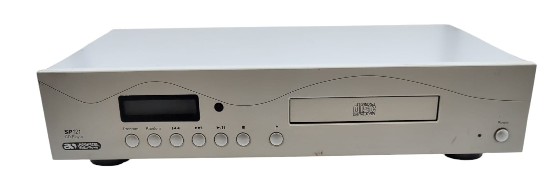 The Acoustic Solutions SP121 Hi-Fi CD player. It features a standard CD drawer, digital display with track/time information, and basic playback controls,