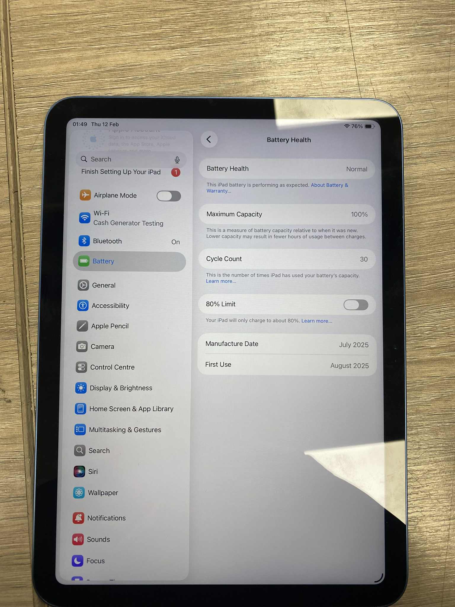 Apple Ipad A16 wifi only Comes unboxed Doesn't come with charger Amazing condition; 100% battery health Scratch/dent free IOS 26.3 128gb storage Comes with 6 month warranty