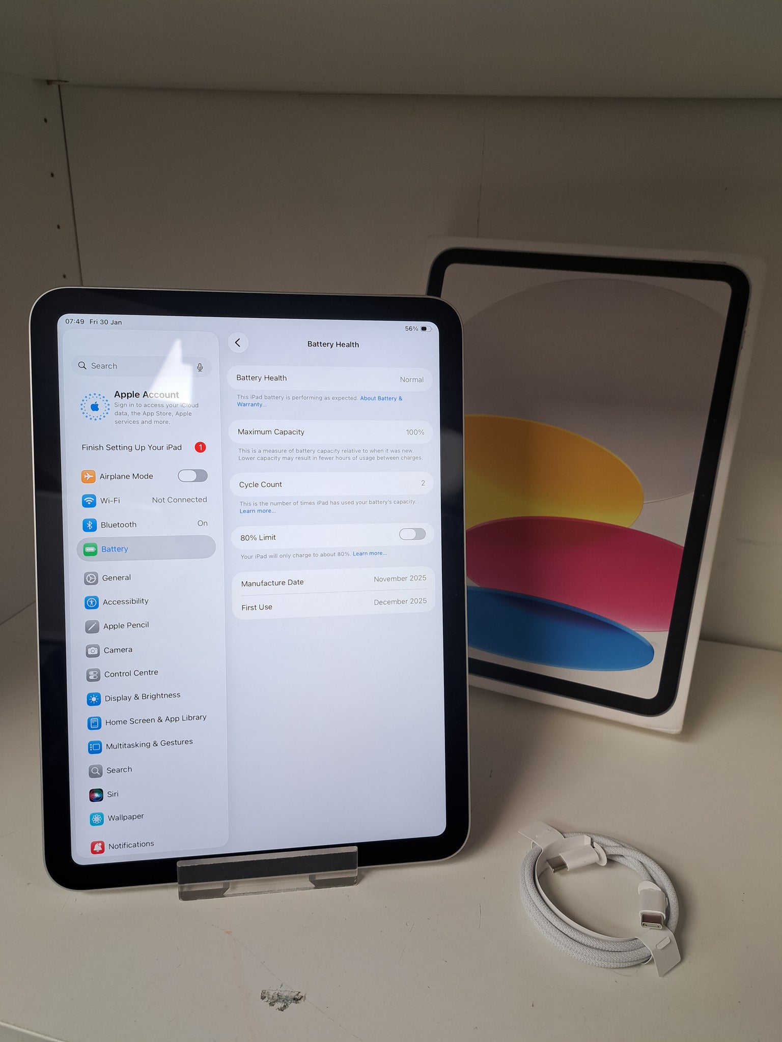 This iPad A16 is in great condition showing barely any signs of usage as its first time use was in December 2025. The front screen has a couple of tiny marks that you have to really look for but once the screen is on you wouldn't notice at all. This item comes with its original box and charge cable.