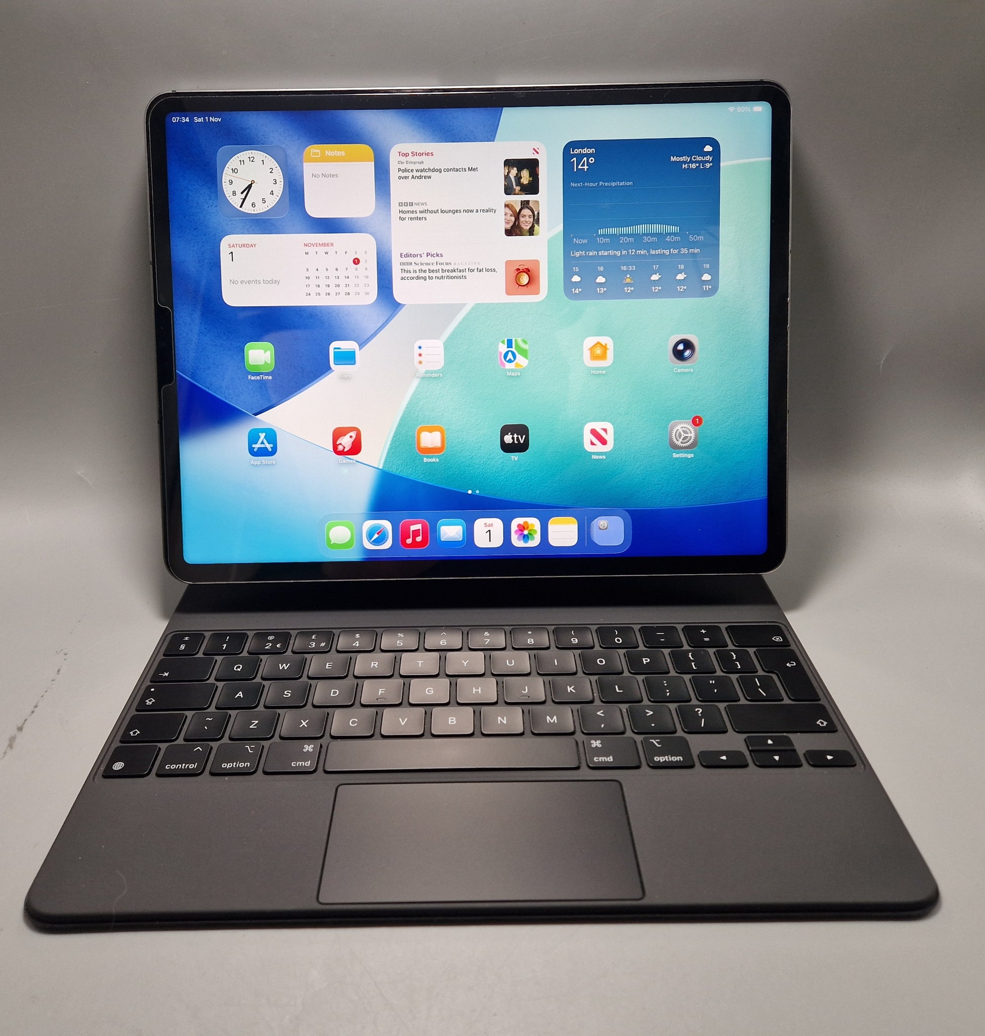 Apple iPad Pro 12.9" M1 5th Gen (A2461) 128GB - Space Grey, Unlocked B perfect working condition, excellent physical condition, has a couple of minute chips on the bottom of the screen protector and a couple of tiny bubbles under it but screen is in immaculate condition