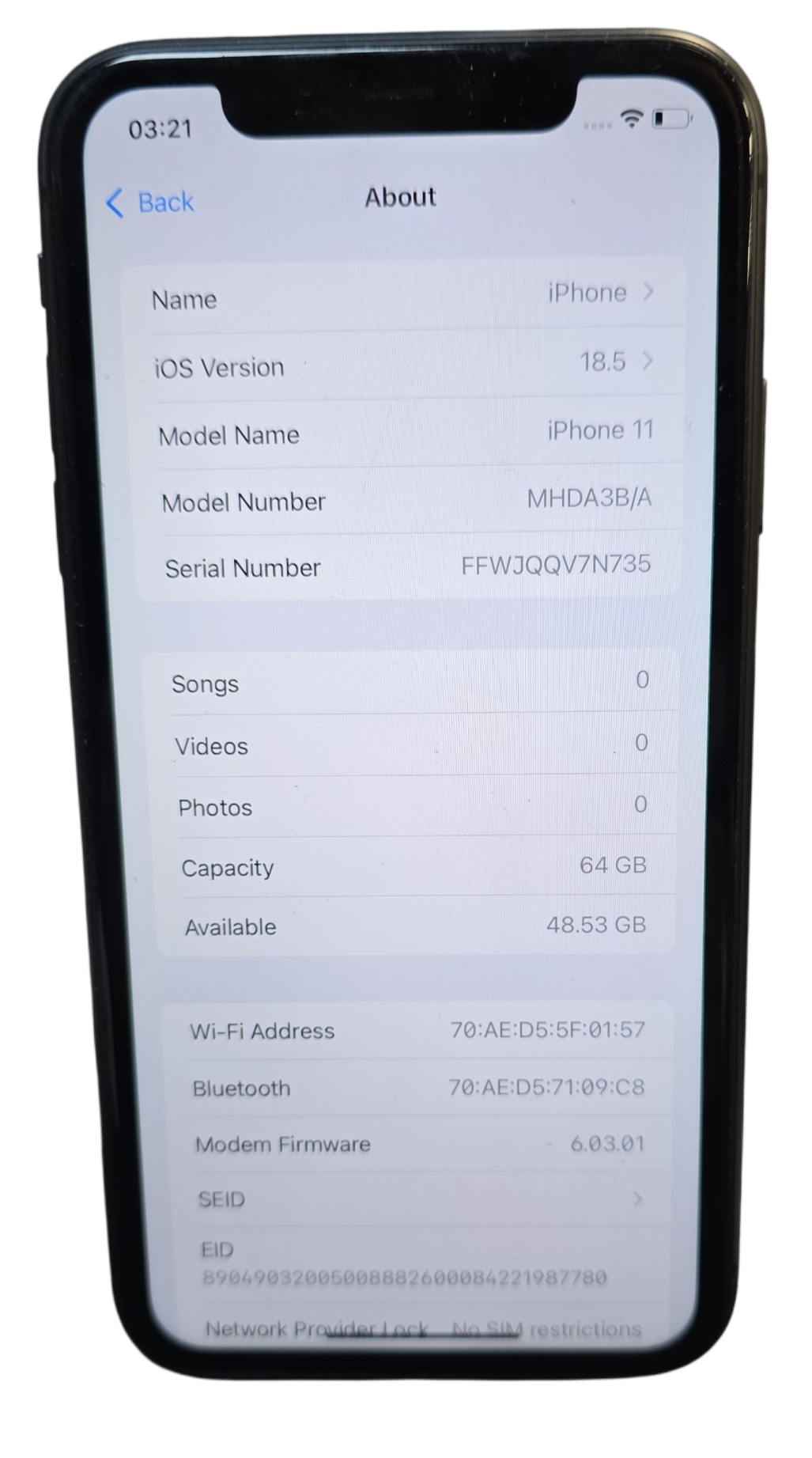 Liquid Retina Display Stretching from edge-to-edge 6.1 Liquid Retina display offers more space for all your content. This stunning screen offers plenty of detail and superb brightness, and True Tone technology for accurate colours. A13 Bionic Processor The A13 Bionic processor provides breath-taking performance for demanding operations and games but is also power-efficient, so it won't drain your battery. Dual camera system with Ultra Wide The iPhone 11 comes with an amazing dual-camera system with an Ultra Wide camera that's perfect when you're taking photos of landscapes, groups, large interiors and action shots. QuickTake This useful feature that ensures that you will not miss any unexpected moment on the video. With iPhone 11, you can simply take videos in the photo mode by holding the shutter. TrueDepth camera The front-facing TrueDepth 12 Mpx camera lets you take amazing selfies and stunning group photos full of vivid colors. You can even take slofie, a slow-motion, high-quality selfie using this front camera. Powerful sound experience Enjoy amazing audio quality with Dolby Atmos that delivers wider dynamic range and richer sound. Create videos with unique sound quality, make clearer speakerphone calls, or watch videos and play games with cinematic feeling.