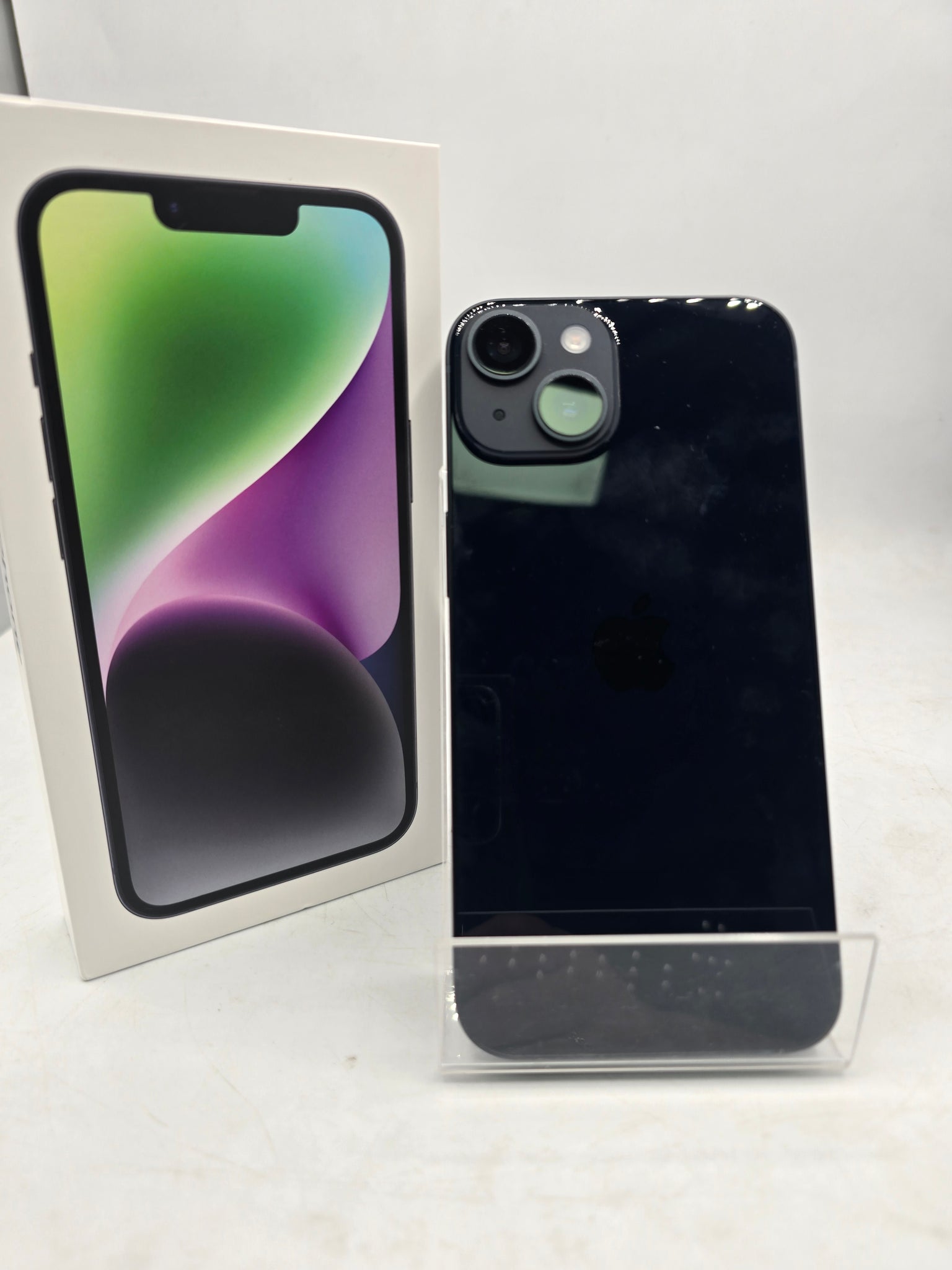 This iPhone 14 model comes in Midnight and has 128GB storage making it a great choice for business users. The highlights of iPhone 14: iPhone 14 supports iOS 16 giving you even greater levels of customisation than before. As well as lifestyle benefits, such as the ability to track activity without needing to use Apple Watch, it gives you all-important live updates from your favourite apps and even more intelligent widgets for the perfect home and work mix. iPhone 14 also includes Apple's amazing 20 hour battery life. This is Apple's best battery ever and, unlike previous models, it's not just available on the Pro models. Perfect for all-day battery performance, it's giving you even longer performance without compromising on quality. And there's amazing quality built right in - the 6.1" screen comes with OLED technology, high resolutions and colour accuracy, plus True Tone capabilities to support different lighting conditions. There's even a new Always-On display that gives you eyes on the important information at a glance. For the visually minded, expect to see a new Main Camera which gives improved image processing and better performance in low light, plus a new Action mode for video recording, which keeps video footage steady in those corporate videos. On the inside, Apple's iPhone 14 comes with the A15 Bionic chip, with a 5-core GPU - the same technology found in the iPhone 13 Pro. boxed, excellent condition, 100% battery