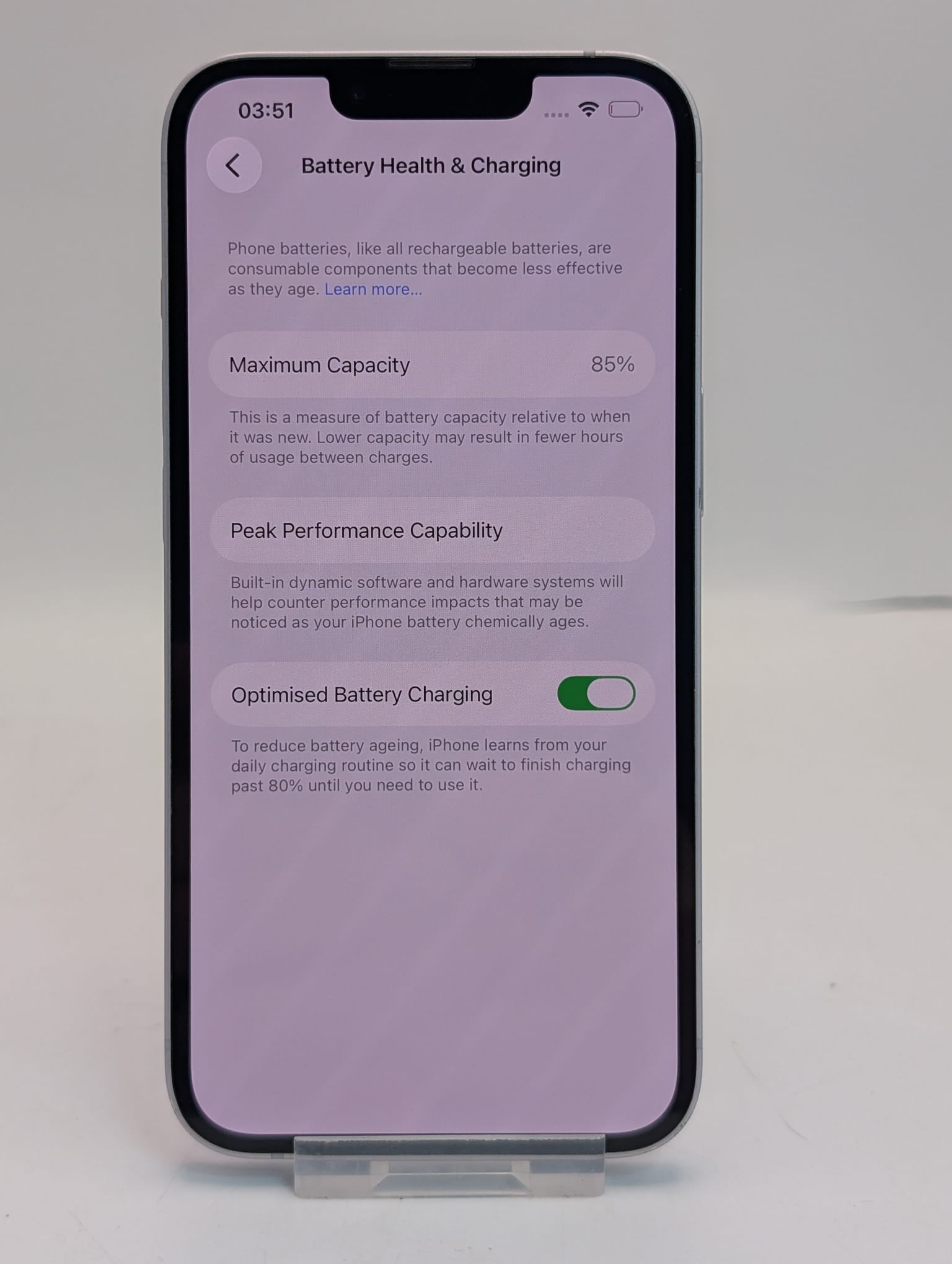 Make: APPLE Model: IPHONE 14 Storage Size: 128GB Network: UNLOCKED Colour: PURPLE Description: GOOD CONDITION, SOME SIGNS OF USE - BATTERY HEALTH 85%