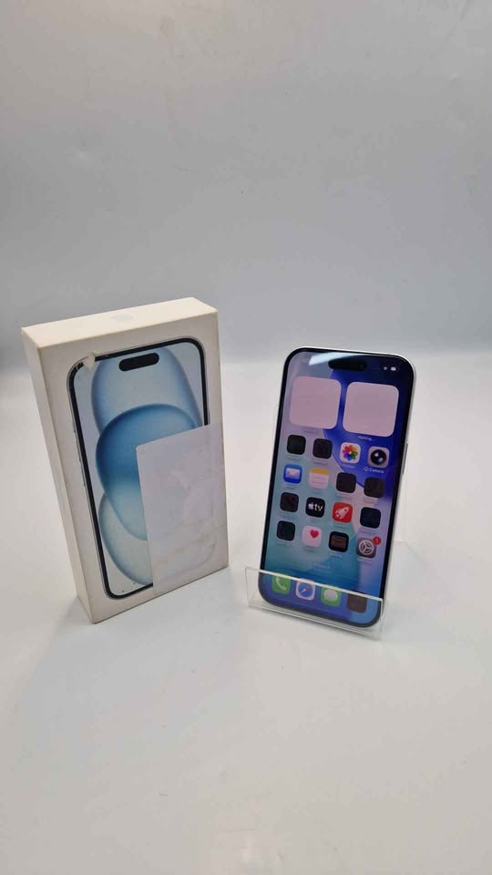 Apple Iphone 15 Mobile Phone - 128GB SSD - Blue - Open Unlocked - Boxed (89% Battery)