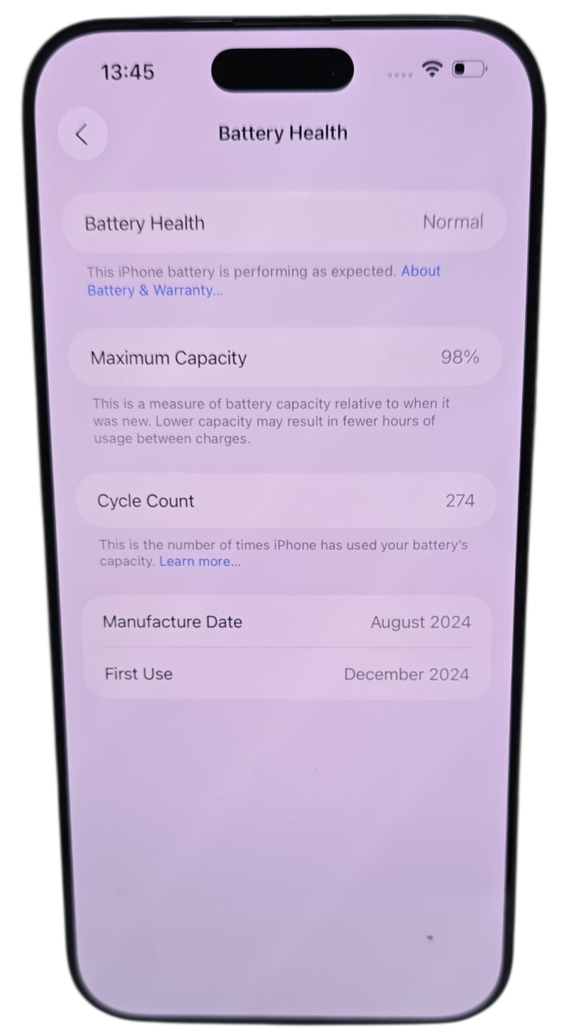 Good used condition, comes unboxed with charger. 98% Battery. Fast Shipping!