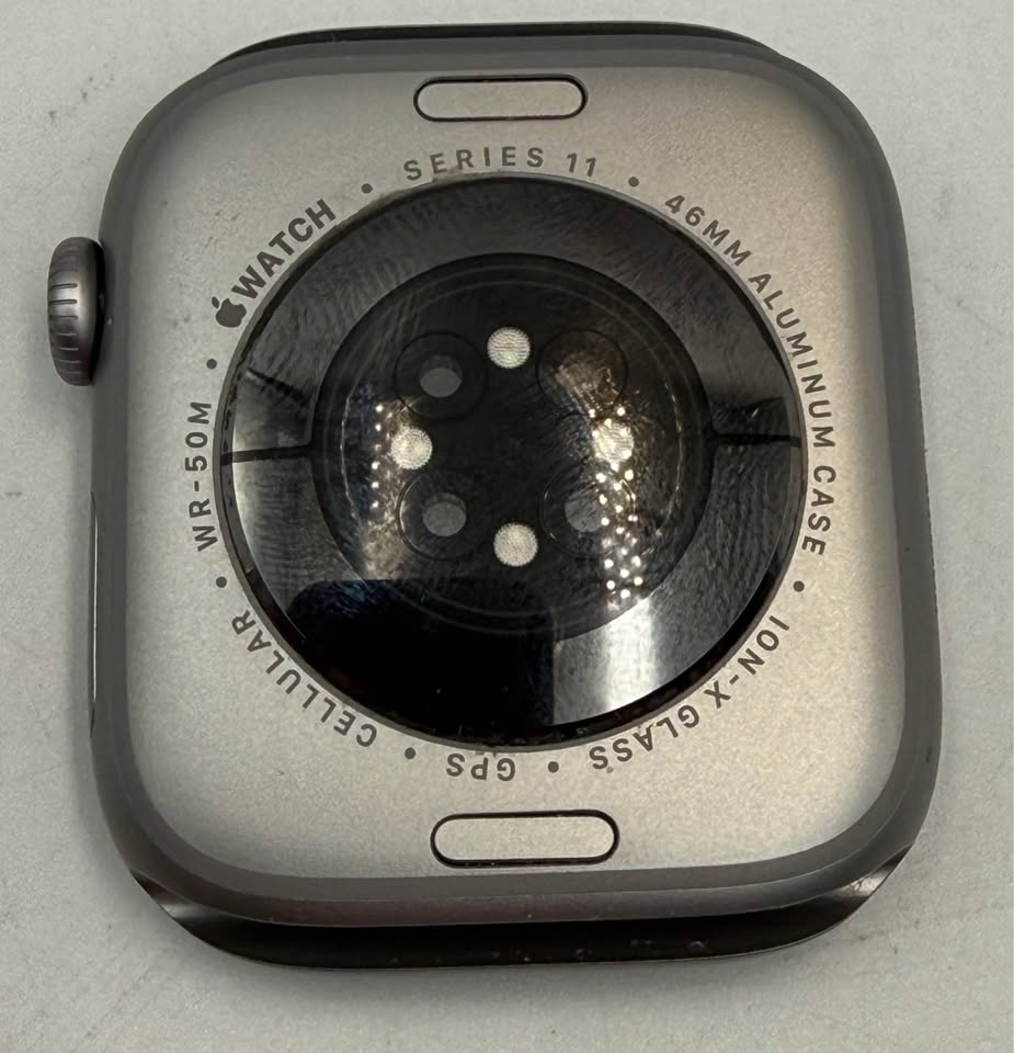 The 46mm Apple Watch Series 11 (GPS + Cellular) is a, sleek, thinned-down smartwatch featuring 5G connectivity, advanced health tracking including hypertension and sleep apnea notifications, and a highly durable, 2x more scratch-resistant display and enhanced fitness metrics. Key Features and Technical Specifications: Design: 46mm aluminum or titanium case, 10% thinner than previous models, with a larger, brighter Always-On Retina display (up to 2,000 nits). Durability: Apple Watch Series 11 46mm Ion-X glass display is 2x more scratch-resistant, with 50m water resistance and IP6X dust resistance. Health Monitoring: Apple Watch Series 11 Hypertension notifications and sleep tracking, including a Vitals app, ECG, and sleep apnea notifications. Cellular Connectivity: Built-in 5G allows for calls, texts, and streaming without an iPhone nearby. Performance: Powered by Apple Watch Series 11 Workout Buddy via Apple Watch Series 11 46mm Gold Titanium Case Apple Intelligence, featuring advanced metrics for fitness. Safety: Apple Watch Series 11 Crash Detection and Fall Detection.