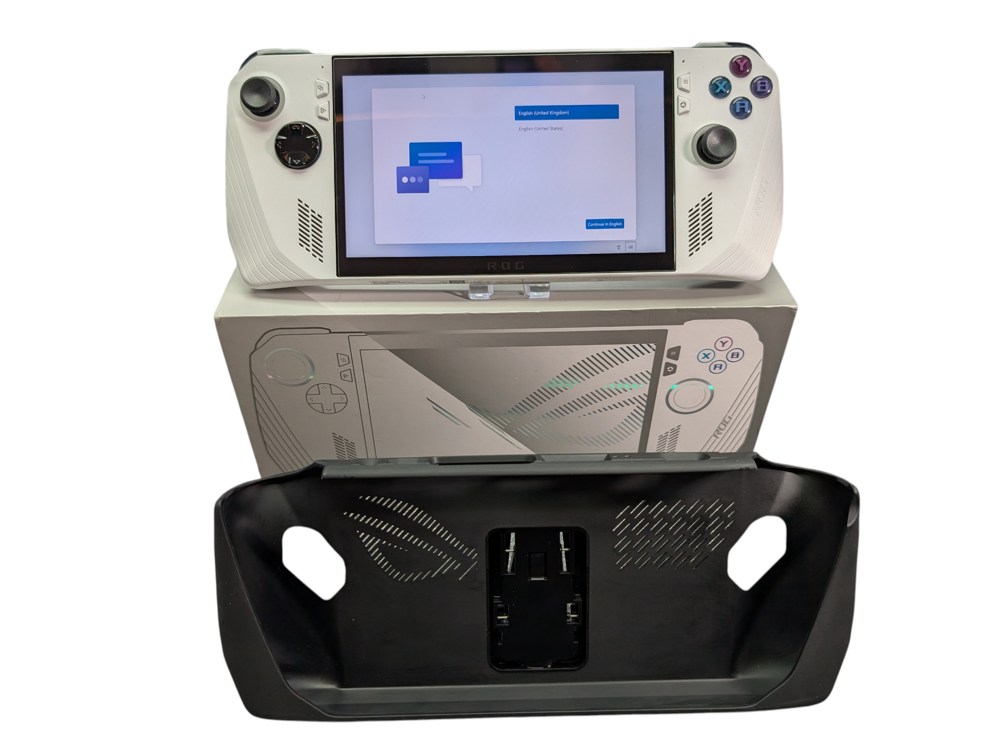 HERE WE HAVE A ASUS ROGG ALLY HAND HELD PC GAMING CONSOLE BOXED WITH OFFICIAL CHARGER. THERE IS A LITTLE PIECE OF PLASTIC THAT HAS COME AWAY AS SHOWN. ** FOR ANY QUERIES PLEASE CALL OUR PRESTON STORE DIRECT MON-SAT 01772 204889