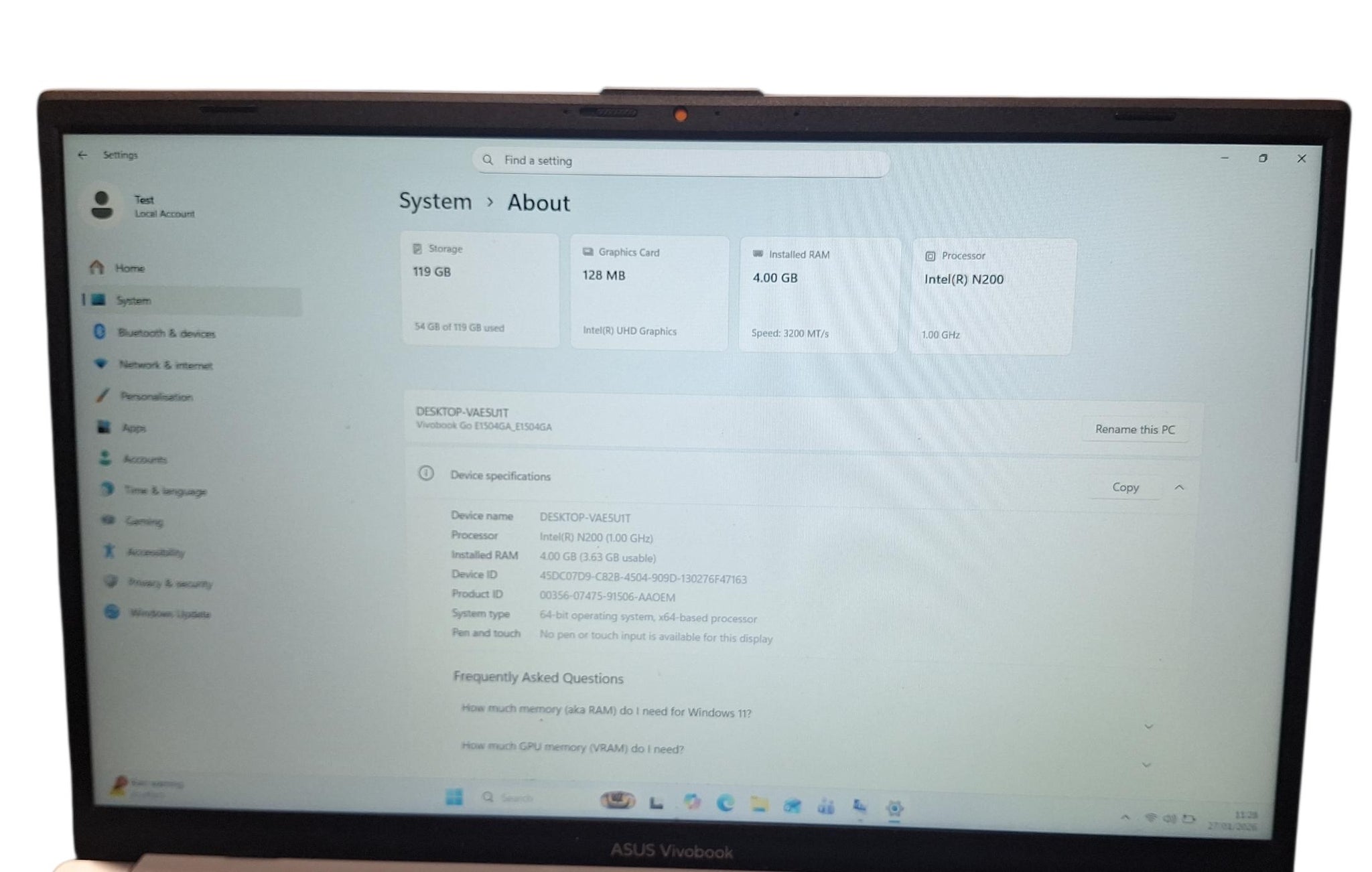The ASUS Vivobook Go 15 combines sleek design with essential features tailored for everyday tasks. Its 15.6-inch Full HD display ensures brilliant visuals with a resolution of 1920 x 1080, enhanced by an anti-glare coating that minimizes distractions in bright environments. With a solid array of connectivity options, including USB-C and HDMI, this notebook supports various peripherals and enhances productivity while on the go. Powering the ASUS Vivobook Go 15 is an efficient Intel N-series quad-core processor, capable of reaching speeds up to 3.4 GHz. Coupled with 4 GB of DDR4 RAM and a 128 GB SSD, swift performance is available for multitasking and quick access to files. Users will appreciate the AI noise reduction feature during video calls, along with high-quality audio from dual speakers enhanced by ASUS Audio Booster. Additionally, the device features a privacy shutter for the webcam, ensuring peace of mind for personal security. Windows 11 Intel N200 4 Cores 4GB RAM 128GB SSD Intel UHD Graphics