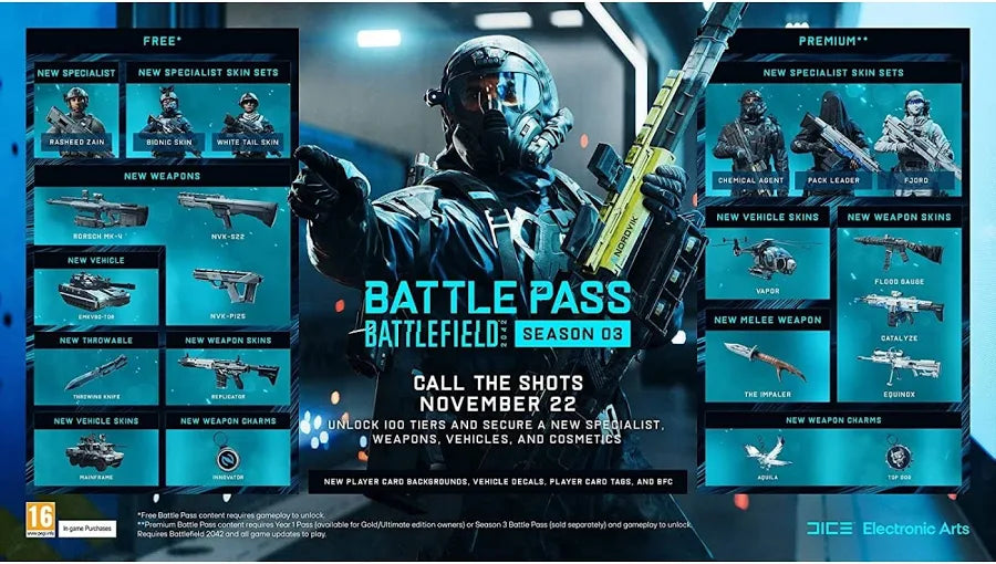 Experience spectacular battles with up to 64 players in Battlefield 2042 - the newest edition to the iconic franchise. In a world where the balance of global power has been shifted by extreme weather and conflicts over vital resources, the US and Russia stand on the cusp of war. Taking place over 7 vast maps, each with multiple combat areas, you'll fight alongside teammates in the Conquest, Breakthrough and Hazard Zone game modes. There's an arsenal of weapons and vehicles to choose from, making each battle a unique, immersive experience. Battlefield conditions change constantly though, so be prepared for unexpected events and freak weather conditions. Make your mark on historic battles with the new Specialist system. There are the 4 classes to choose from, each with their own unique Trait and Speciality that you can bring to each fight. The rest of the loadout is fully customisable too, so you can truly personalise your gameplay. Battlefield 2042 is an ever-evolving multiplayer game - with Seasons bringing you a whole host of new challenges every three months. This live service will come with free and paid for Battle Passes, giving you plenty of new content to enjoy.