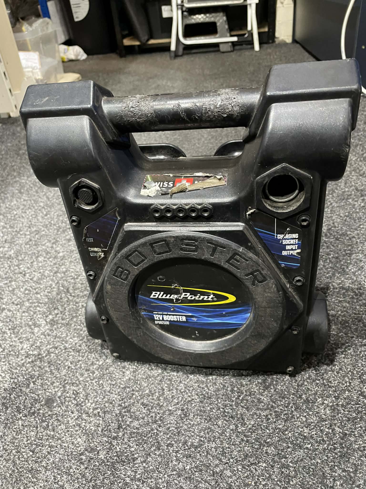 Blue point 12v booster 280 cranking amps peak output of 2500 amps Automated charger with overcharge protection Built in polarity protection fuse