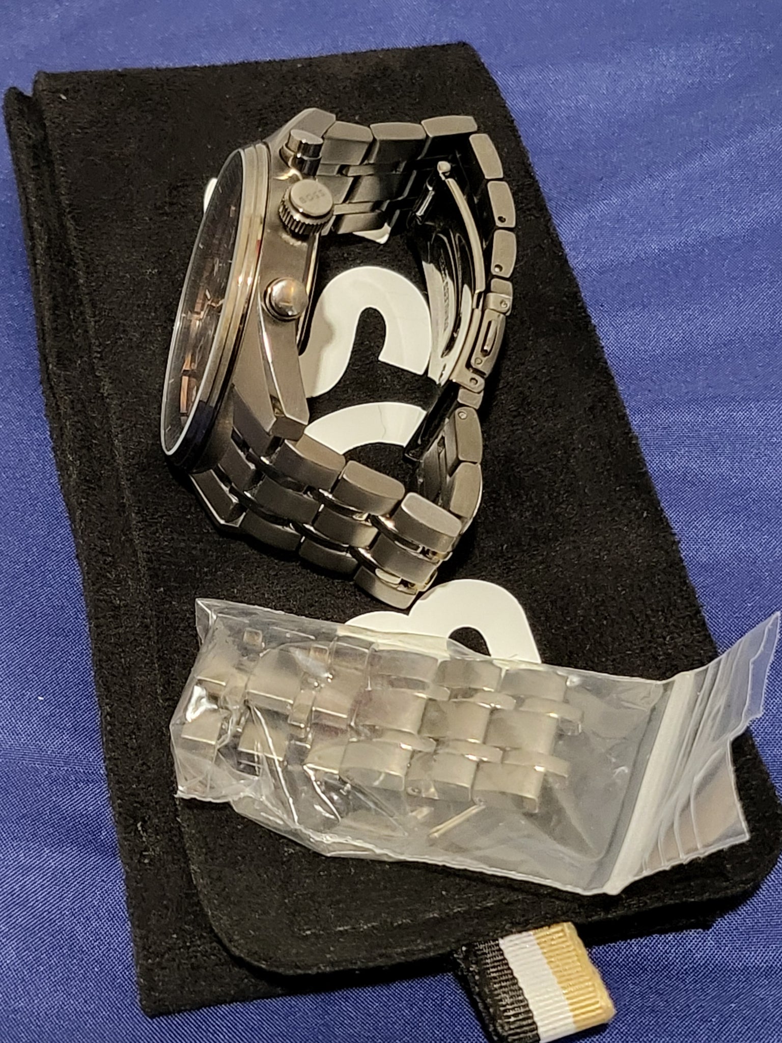 The watch is in overall good condition with a few scratches to back, and comes boxed with extra links and soft pouch. (outer box has slight damage)