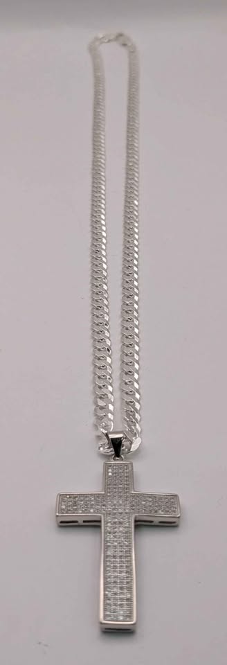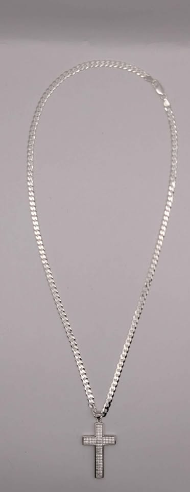 **BRAND NEW** 925 STERLING SILVER CZ CROSS WITH CHAIN 23.2G 22", BOXED